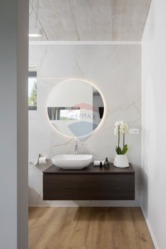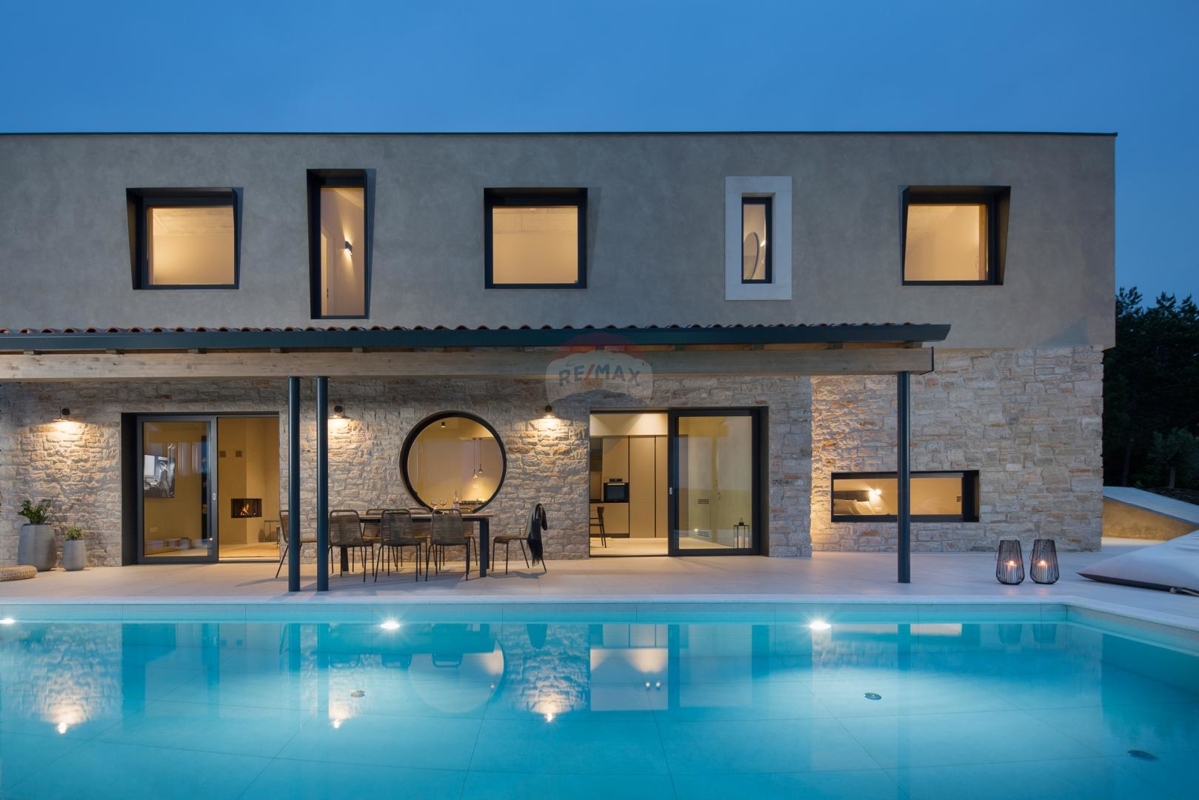 Mitten im idyllischen Istrien liegt diese elegante Villa. Der bezaubernde Ausblick auf die hügelige, grüne Landschaft gedeiht aus allen Räumen und Terrassen.Diese architektonische Schönheit wurde 2021 fertiggestellt und erstreckt sich über drei Etagen:
