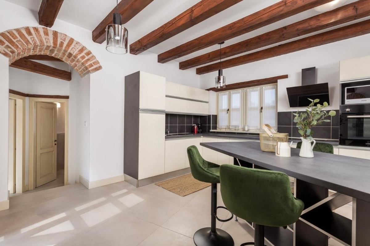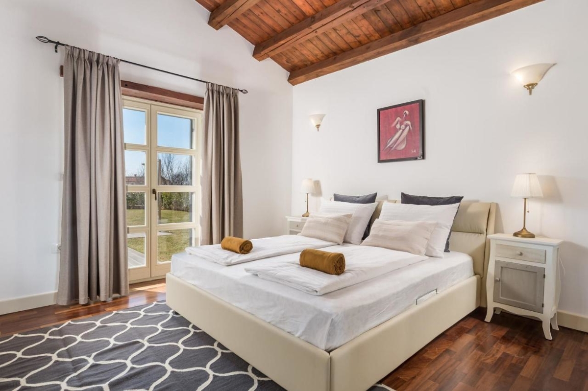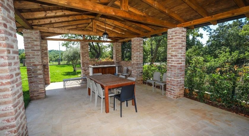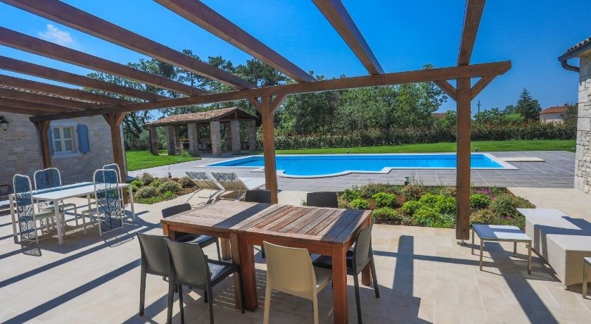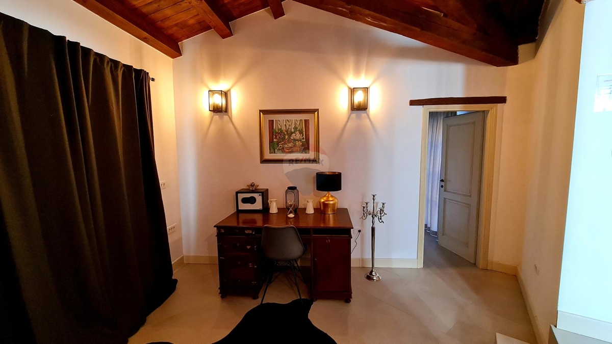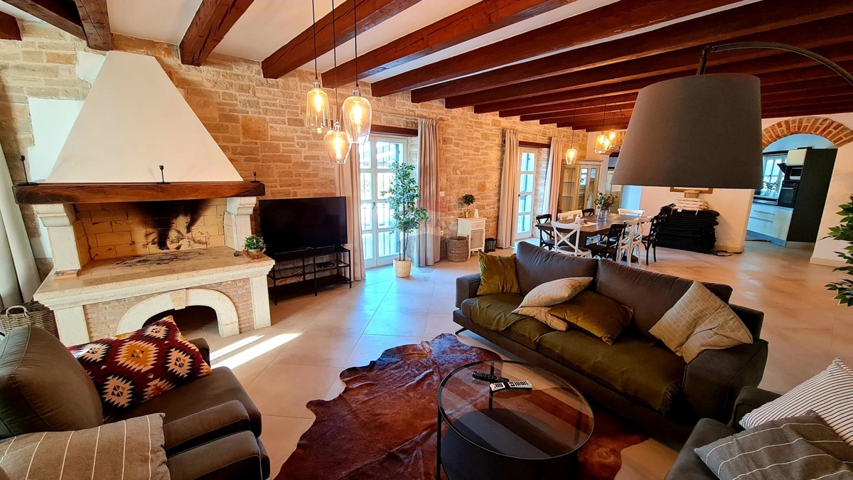 Dieses schöne und stilvolle Haus liegt in einer idyllischen Lage umgeben von Grün im Herzen Istriens. Ruhe, Erholung und Privatsphäre sind garantiert!Im Erdgeschoss dominiert ein einladender und geräumiger, heller Wohn-Essbereich mit Kamin. Die Küche ist direkt an das Esszimmer angeschlossen und dennoch ist es ein separater Raum mit Tisch und eigenem Zugang zur Terrasse. Über dem Flur gelangt man zum Wäscheraum, Abstellzimmer und Heizraum. Ebenso befinden sich auf dieser Etage zwei Schlafzimmer mit jeweils eigenem Badezimmer und direkten Ausgang zum Außenbereich.