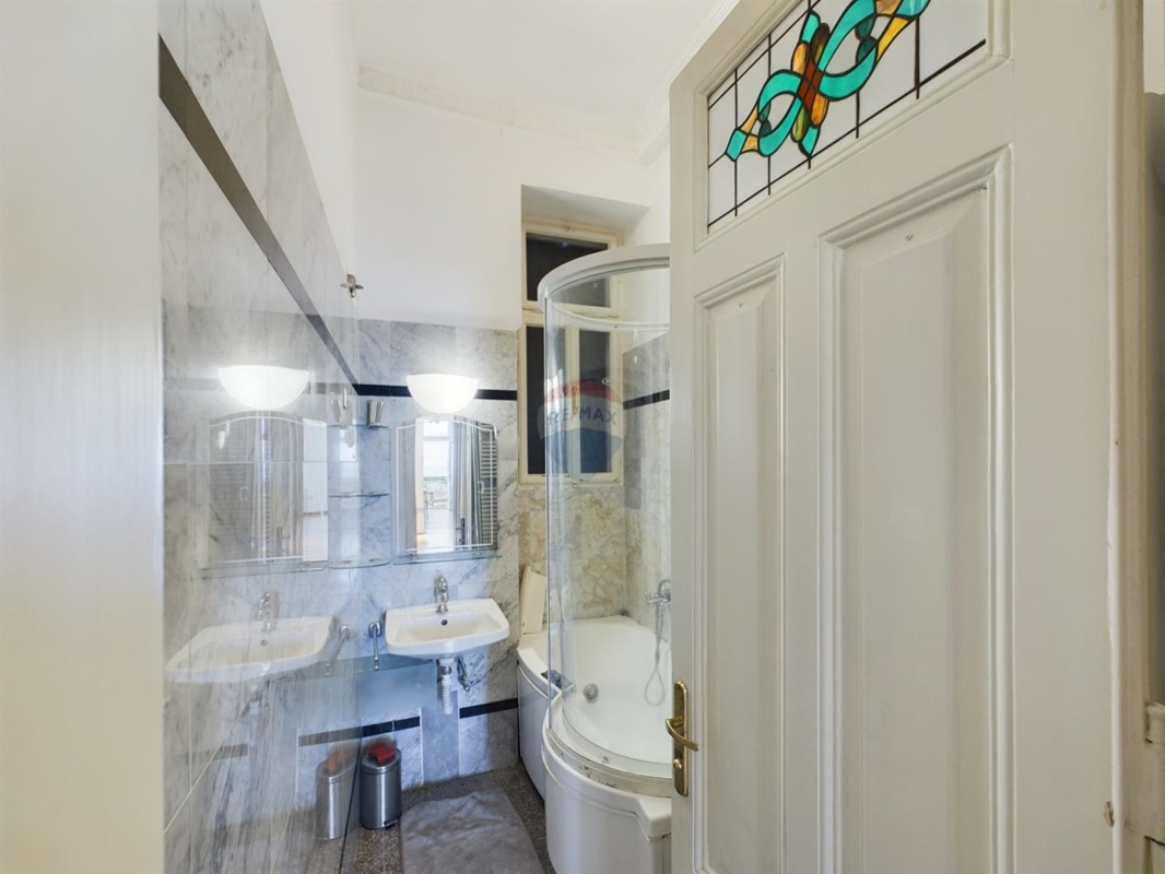 Die Fassade der Villa wurde erneuert. Die Etage wurde hochwertig restauriert, u.a. Parkett- und Terrazzoboden, Stuck-Decken sowie der nostalgische Kamin - ein absoluter Blickfang. Das Bad und separate Toilette wurden renoviert, zeitlos und hochwertig mit Marmor-Fliesen. Die Wohnung ist klimatisiert und wird möbliert verkauft.