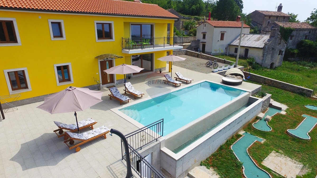 In idyllischer Lage, in südlicher Umgebung von Opatija, liegt dieses 10.000m2 große Anwesen mit Infinity Pool und Meerblick. Absolute Ruhe und Privatsphäre sind garantiert.Das Ferienhaus bietet drei Schlafzimmer, vier Bäder, einen großen offenen Wohn-Ess-Bereich mit Küche, sowie eine große Terrasse.