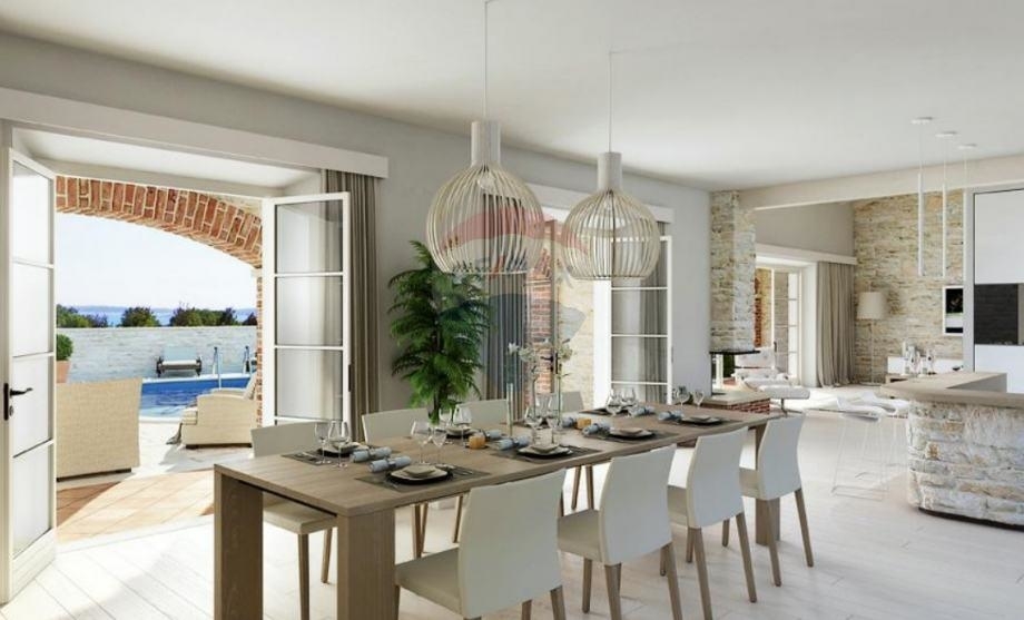 Diese wunderschöne Steinvilla umfasst zwei Häuser mit großen hellen Räumen und liegt in einem ruhigen Stadtteil von Medulin und bietet Ihnen dank dem großen Grundstück Privatsphäre und einem herrlichen Blick ins Grüne.Beide Häuser sind wie folgt aufgebaut:
