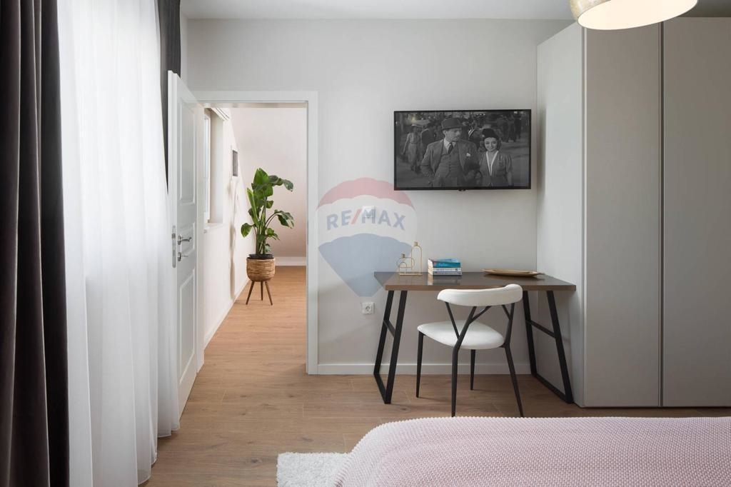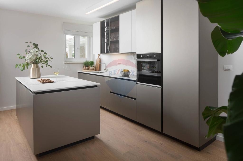 Das Erdgeschoss verfügt über einen geräumigen Wohn-Ess-Bereich mit großer Küche und Kamin, ein Schlafzimmer mit eigenem Bad und einen Technikraum. Der Wohnbereich ist verbunden mit der überdachten Terrasse sowie ein zusätzliches Badezimmer.