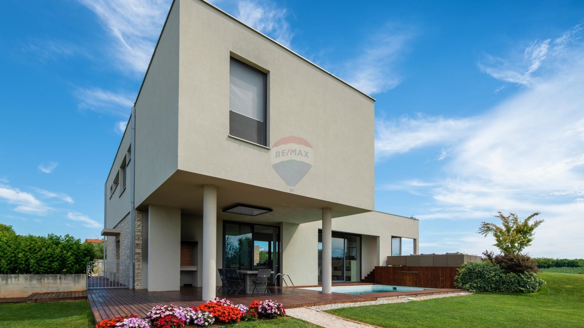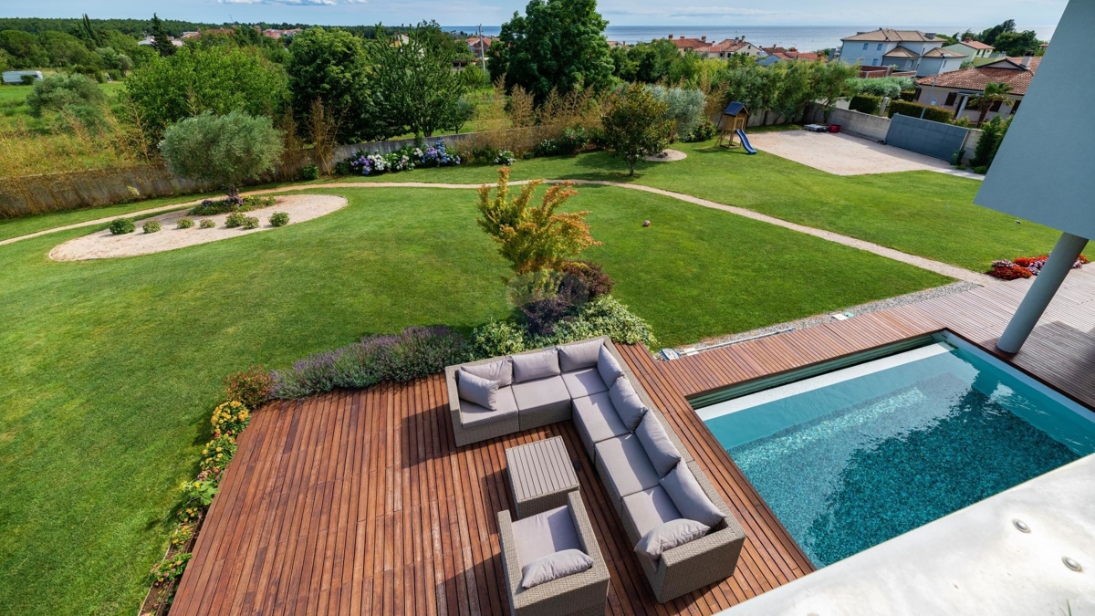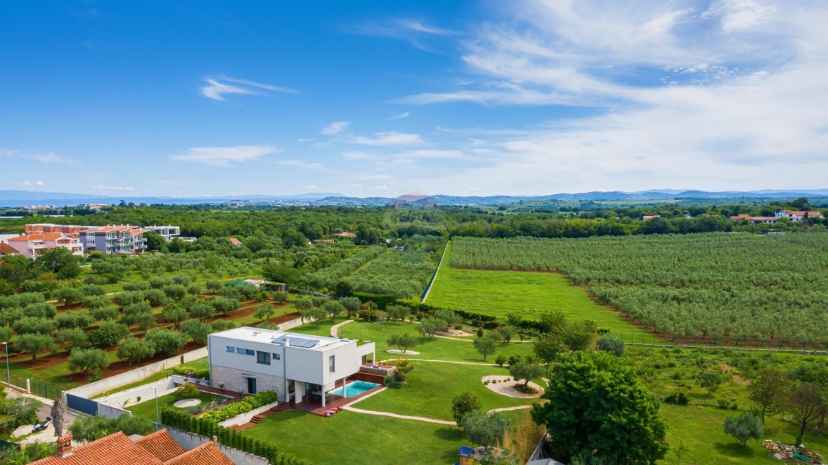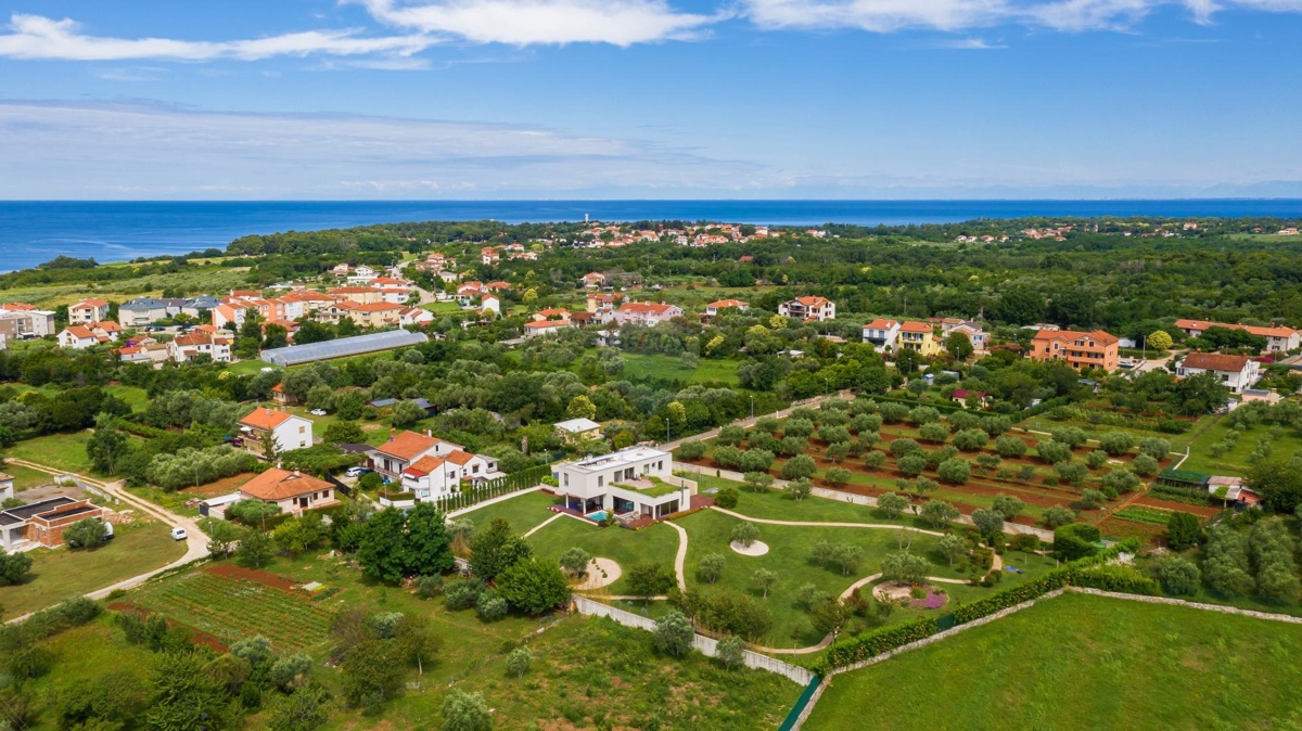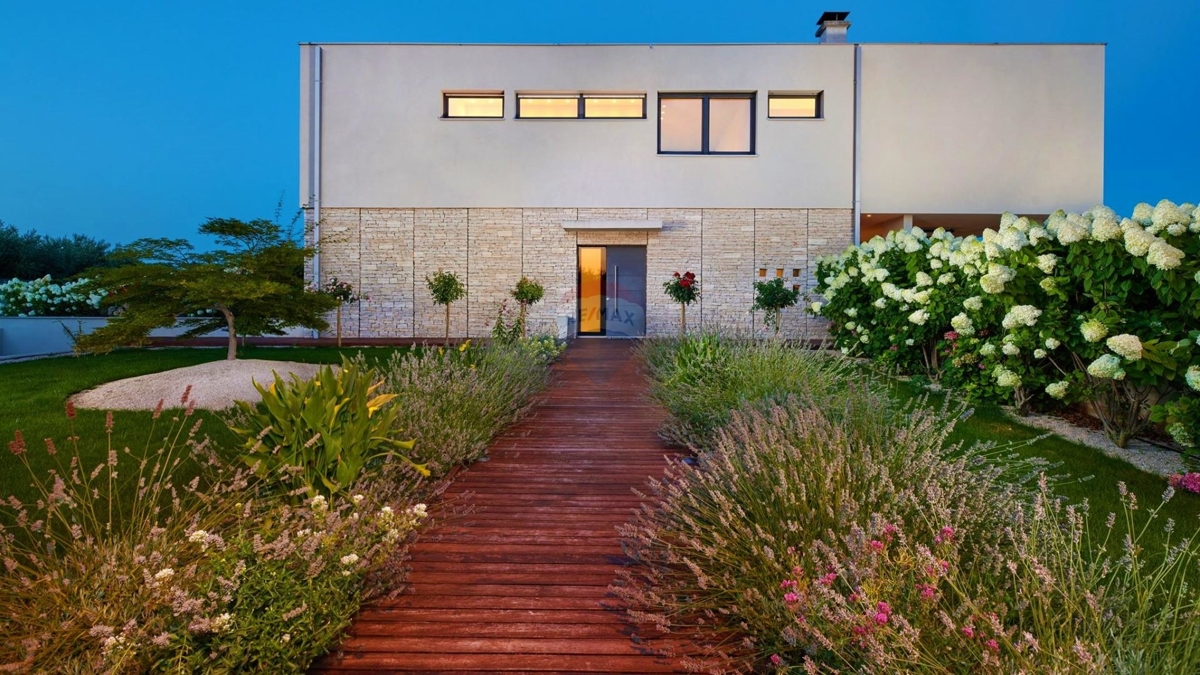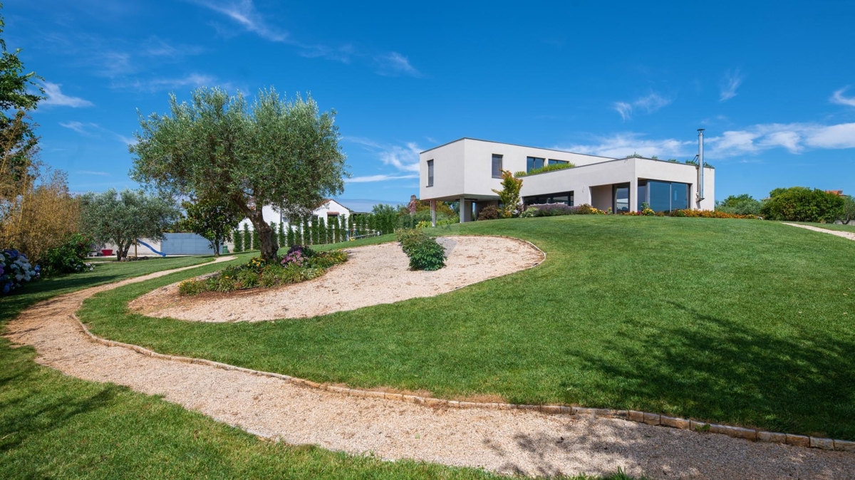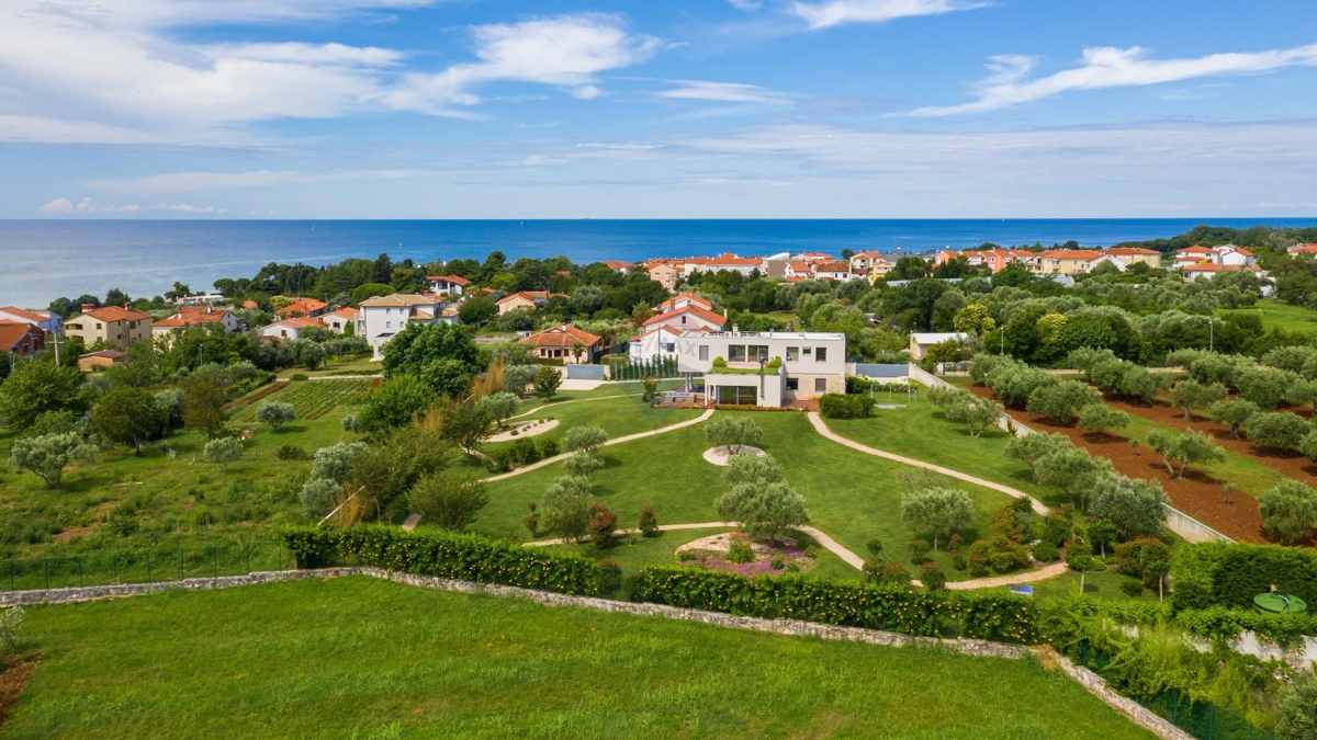 In ruhiger Lage - am Stadtrand von Umag, mit wunderschönem Blick auf die nahen Olivenhaine und das Meer liegt diese wunderschöne Villa umgeben von einem märchenhaften Garten mit 5000 m2.Bei der Gestaltung der Räume wurde großer Wert auf Großzügigkeit der Räume und Tageslicht gelegt, dabei alle technischen Möglichkeiten moderner und klarer Architektur genutzt. Es wurden nur hochwertigste Materialien verwendet sowie nur hochwertige Komponenten wie Luxusmöbel eingebaut.