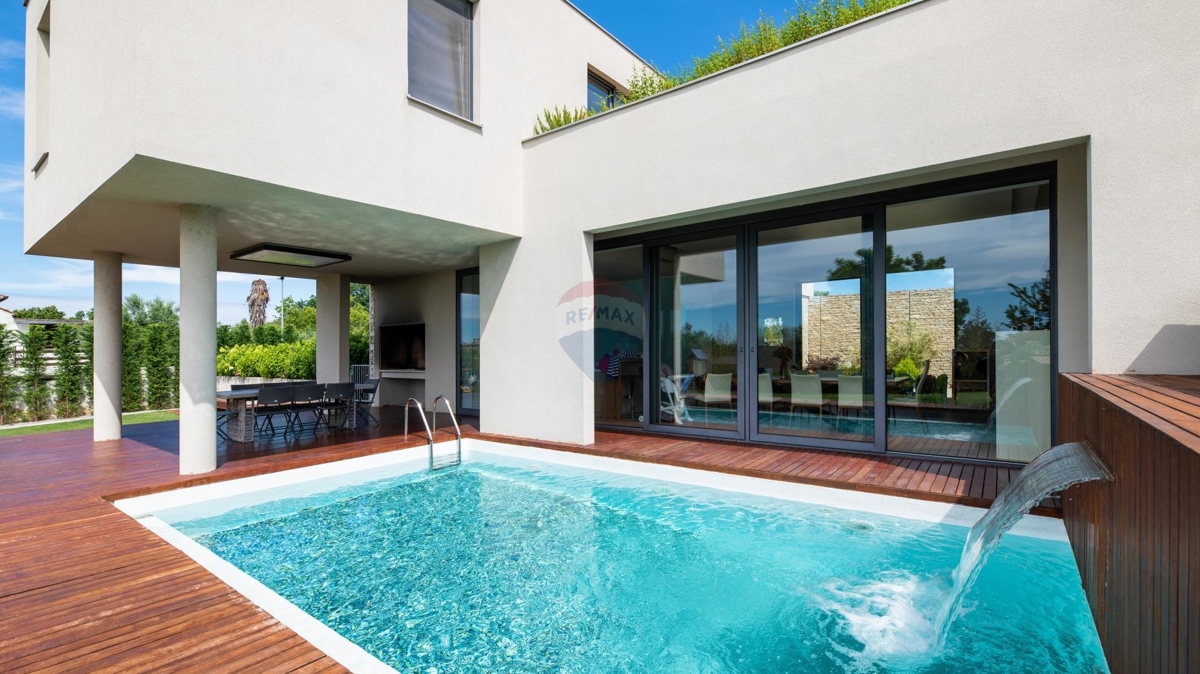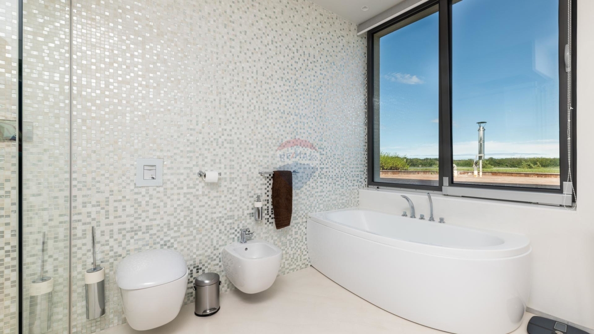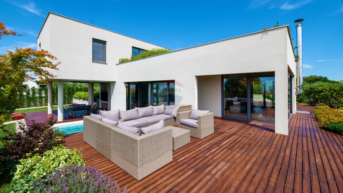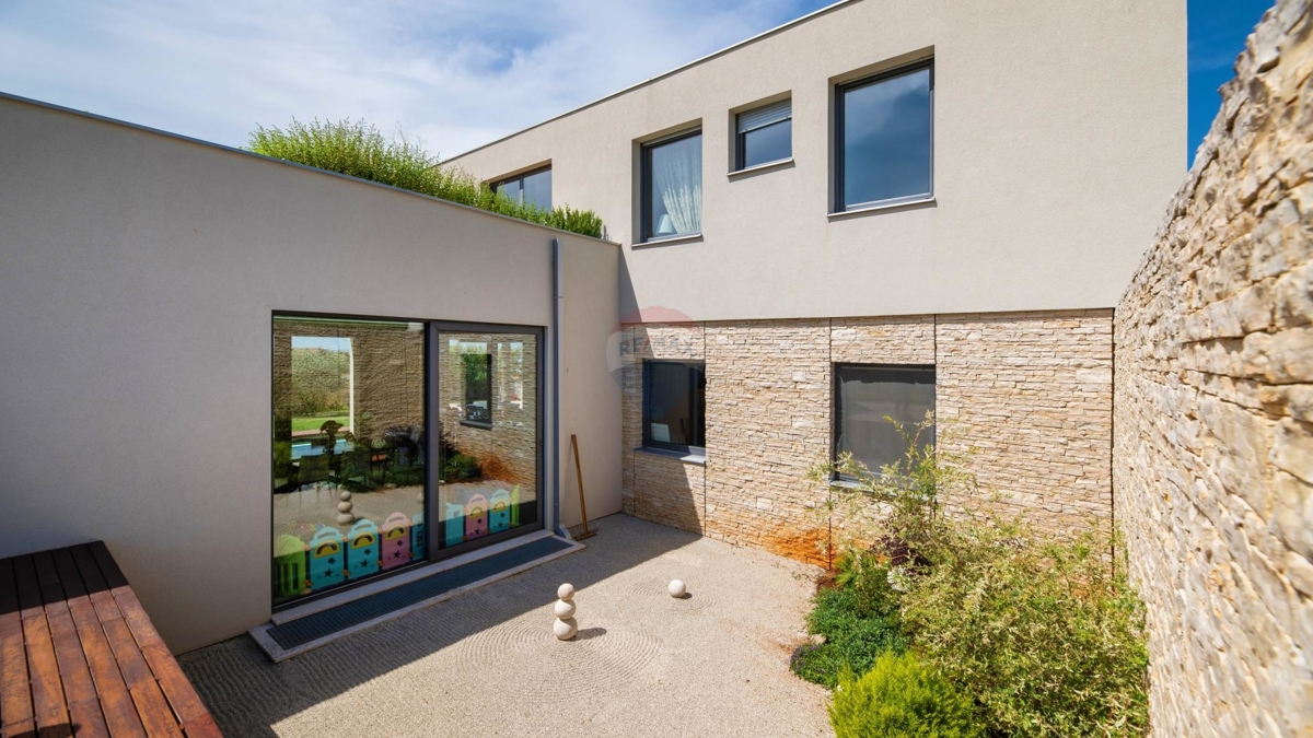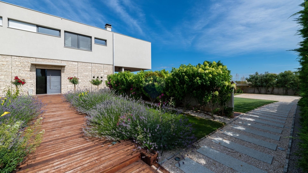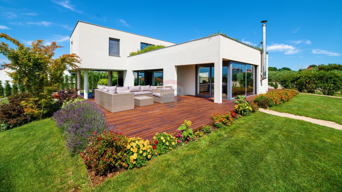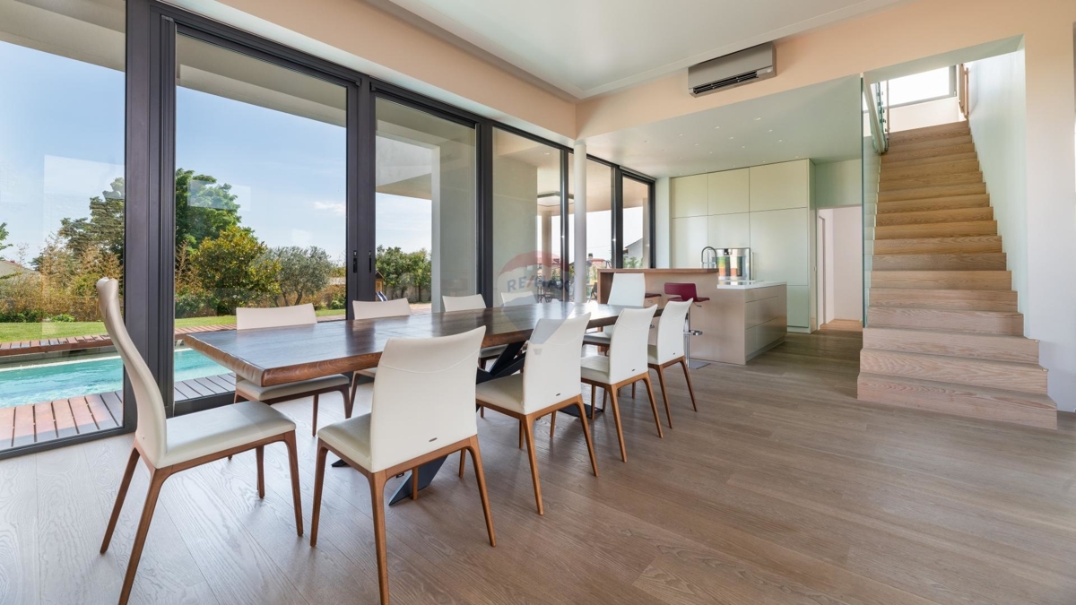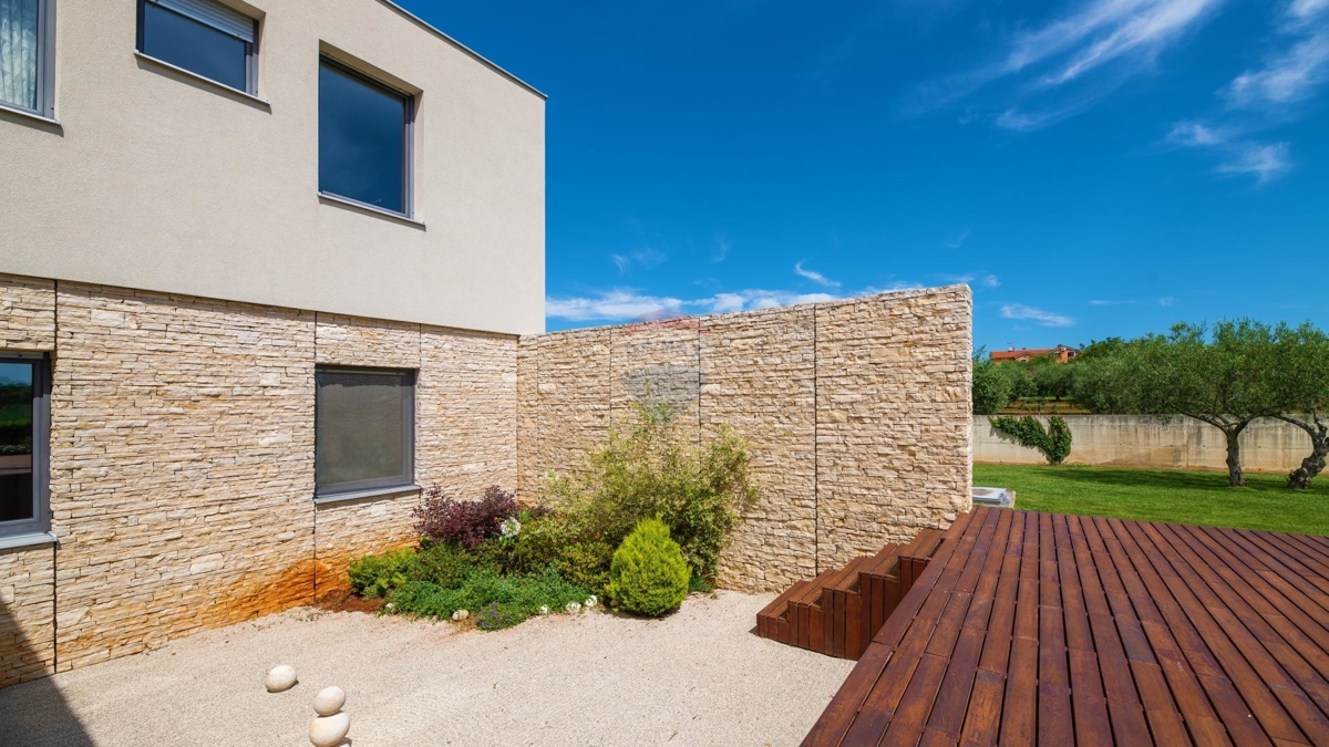 In ruhiger Lage - am Stadtrand von Umag, mit wunderschönem Blick auf die nahen Olivenhaine und das Meer liegt diese wunderschöne Villa umgeben von einem märchenhaften Garten mit 5000 m2.Bei der Gestaltung der Räume wurde großer Wert auf Großzügigkeit der Räume und Tageslicht gelegt, dabei alle technischen Möglichkeiten moderner und klarer Architektur genutzt. Es wurden nur hochwertigste Materialien verwendet sowie nur hochwertige Komponenten wie Luxusmöbel eingebaut.