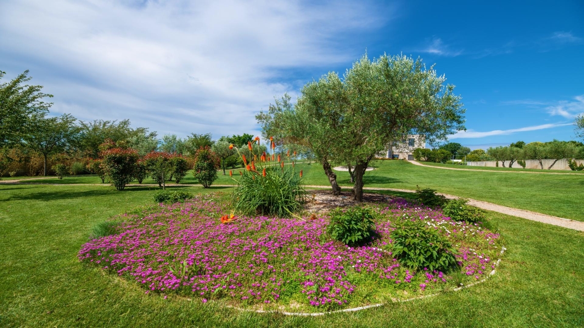 Zahlreiche Pflanzen in Kombination mit alten Oliven strahlen Ruhe und Entspannung aus.