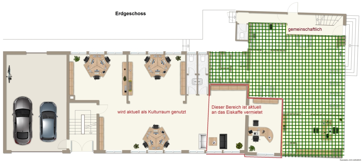 Außerdem gehört zu dem Paket die gesamte Grünfläche links des Gebäudes.