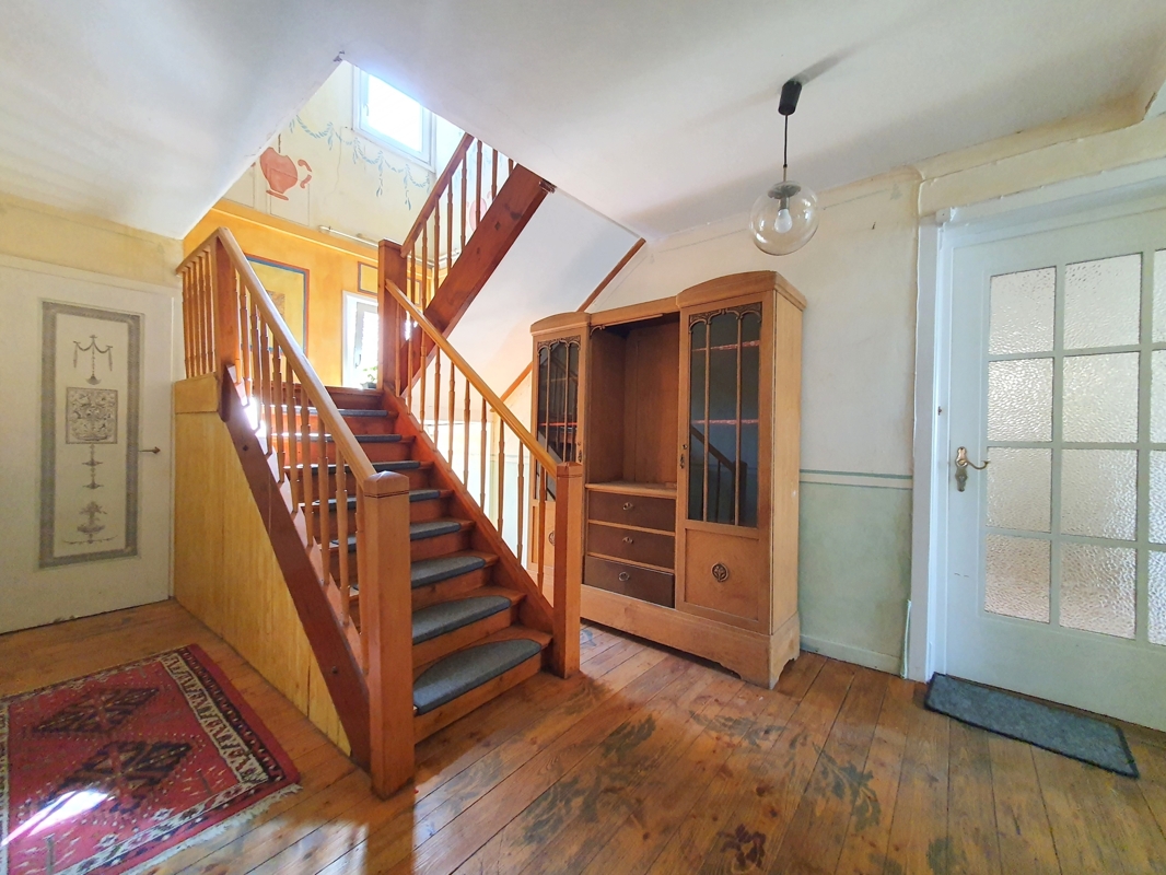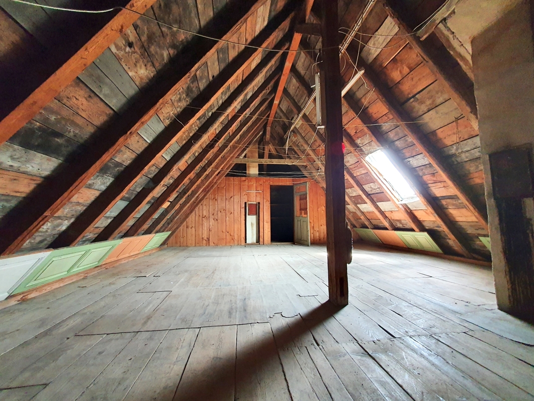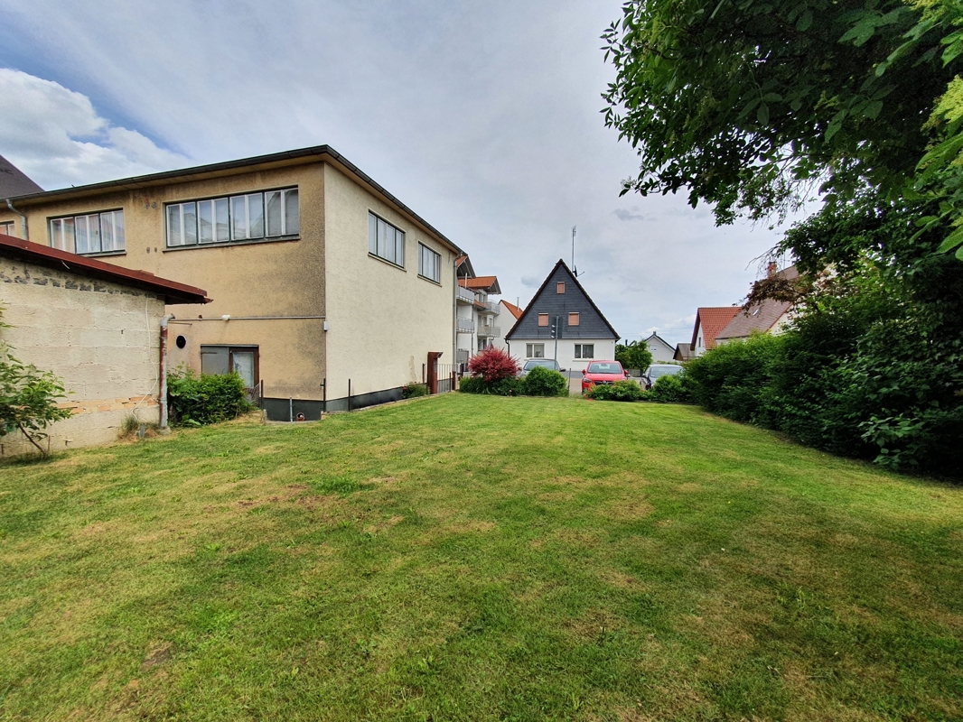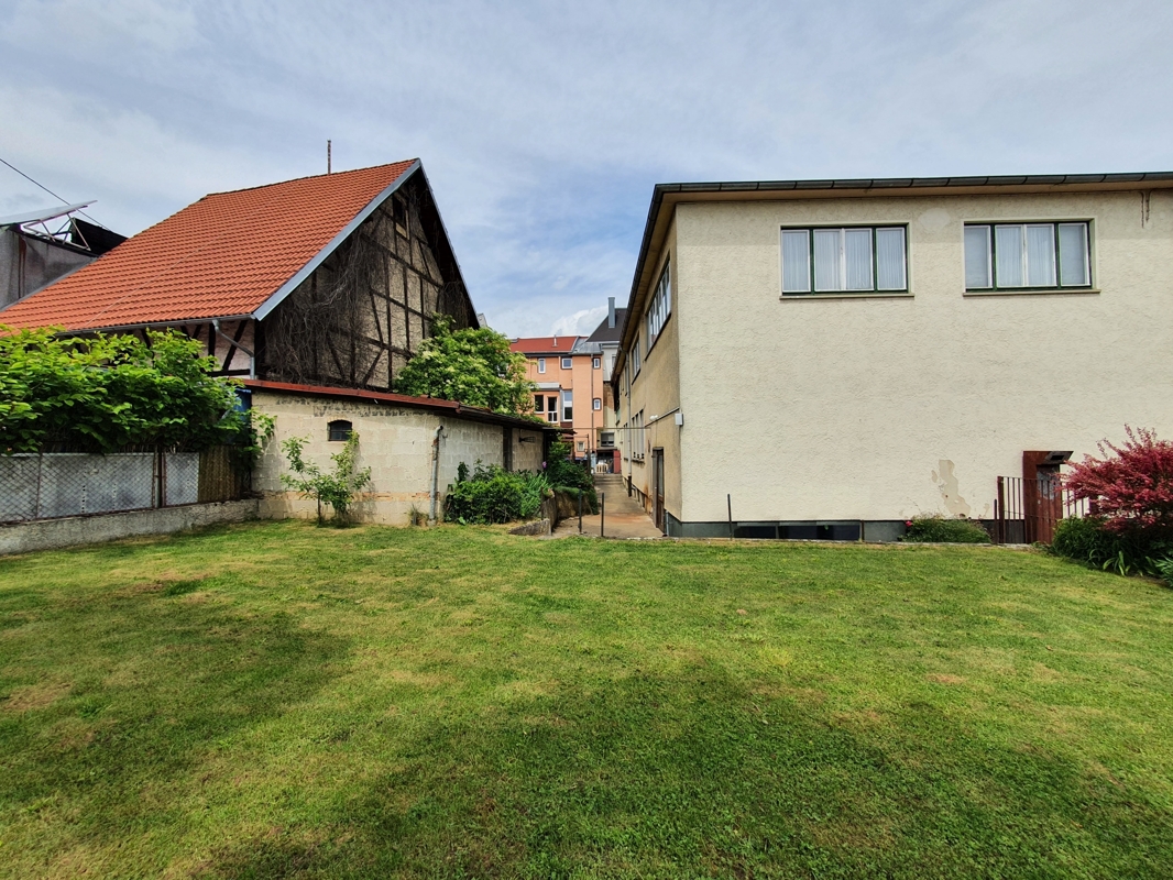 Das Immobilienpaket besteht aktuell aus einer Wohneinheit und drei Gewerbeeinheiten mit sehr vielen Möglichkeiten für Investoren mit Weitblick, Kreativität und innovativen Ideen. Das vordere, an der Bahnhofstraße gelegene Wohn- u. Geschäftshaus wurde ca. im Jahr 1925 in Massivbauweise errichtet. Das Ladenlokal im Erdgeschoß beherbergt eine Eisdiele, diese ist nicht Bestandteil des Angebotes. Rechts von der Eisdiele befindet sich, neben einem Durchgang zum Hinterhof, der Zugang zu den darüber liegenden Wohnungen im Haupthaus. Dieser Eingang mit seinem charmanten, liebevoll gestalteten Treppenhaus wird gemeinschaftlich vom Nachbarhaus ebenfalls als Zugang zu deren oberen Wohnungen genutzt. Im 1. Obergeschoss ist die Hauptwohnung untergebracht, die im Angebot enthalten ist. Die großzügig geschnittene Wohnung mit ihren 5 Zimmern lässt sich je nach Bedarf individuell nutzen und erweitern. Die Wohnung im 2. Obergeschoß gehört zur Eisdiele im Erdgeschoß und ist ebenfalls nicht Bestandteil des Angebotes. Das darüber liegende Dachgeschoss wird momentan als Bühne genutzt, lässt sich aber auf Grund des eigenen Aufgangs und der Dachhöhe ebenfalls zu Wohnraum umbauen (eventuell ist aber eine behördliche Genehmigung einzuholen). Mit etwas handwerklichem Geschick kann hier eine Traumwohnung entstehen! Das Dach des Haupthauses wurde 2004 neu gedeckt, beheizt wird die Immobilie mit einer Öl-Zentralheizung aus dem Jahr 2006. Ein Gasanschluss ist im Haupthaus vorhanden. Der Gewerbeanbau mit Zugang von der Schillerstraße wurde in den 1960-er Jahren ebenfalls in Massivbauweise errichtet. Im Untergeschoss war früher eine Wäscherei untergebracht. Dank der Oberlichtfenster und einer ausreichenden Raumhöhe lassen sich die Räume auch weiterhin sehr gut nutzen. Das Erdgeschoß ist vermietet und wird derzeit als Vereinsraum genutzt. Das gesamte Obergeschoss ist an eine Physio-Praxis vermietet. Die Zufahrt zur ebenerdigen, 56 m² großen Garage am Ende des Gebäudes erfolgt ebenfalls über die Schillerstraße, über einen Hintereingang gelangt man in den Garten des Grundstückes. Hier befindet sich noch der ca. 35 m² große Schuppen mit Vordach. Das Flachdach des Anbaus wurde 2012 neu abgedichtet, die gesamte Immobilie ist in einem baujahrestypischen Zustand, es stehen Sanierungs- und Modernisierungsarbeiten an.