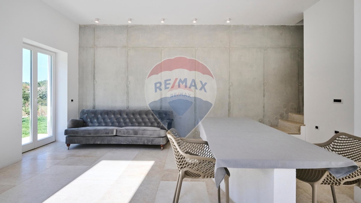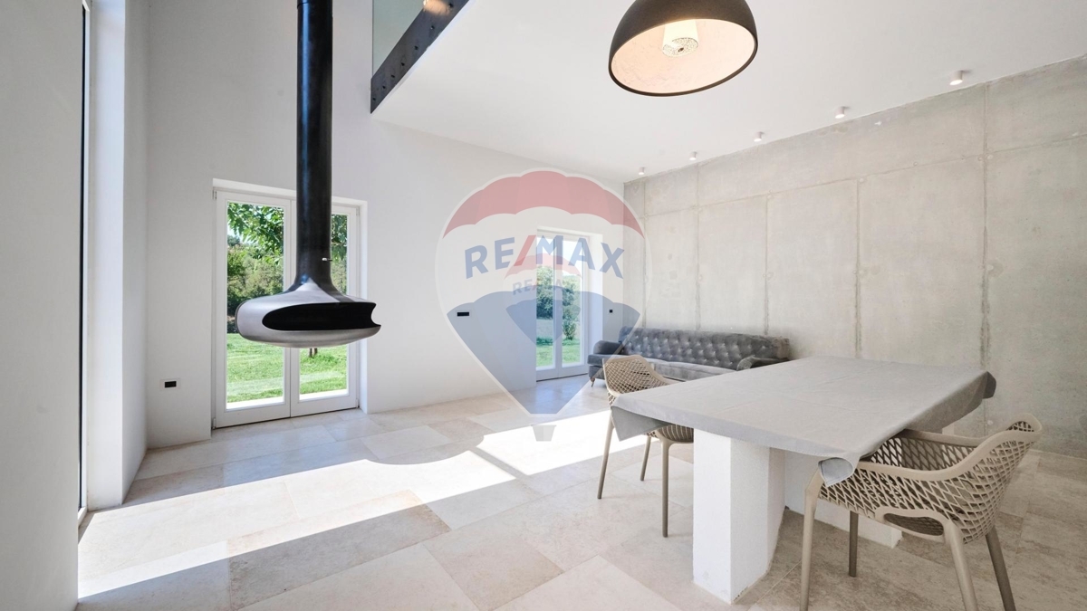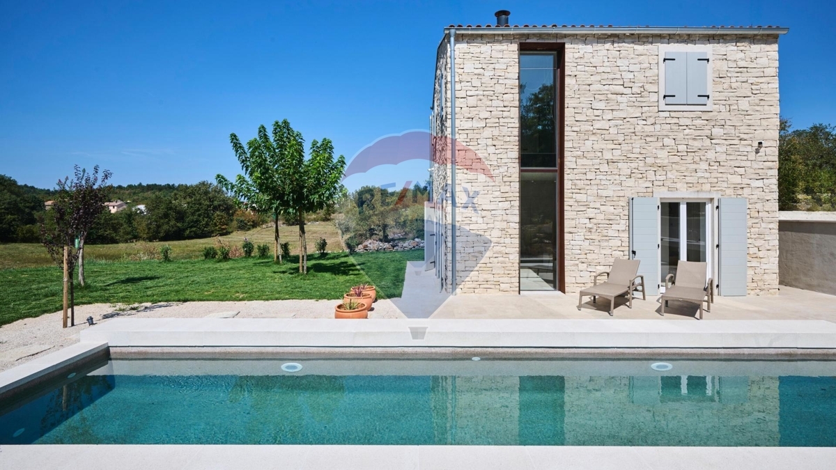 Auf einem fast 20.000 m2 großem Anwesen nördlich von Umag steht dieses charmante und modernisierte Steinhaus. Die Umgebung ist malerisch, die idyllische Lage sorgt für eine Oase der Ruhe und absoluten Privatsphäre und dennoch Nähe zu allen nötigen Belangen.Im Erdgeschoss dominiert ein großer offener Wohn-Ess-Bereich mit Küche, sowie ein Gäste-WC.