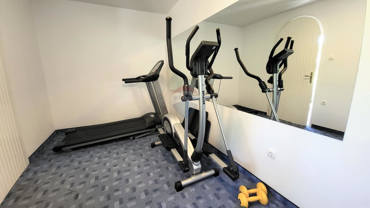 Ein Fitnessraum und Entspannungsbereich mit Jacuzzi sowie Abstellbereich und Waschküche runden das Angebot ab.