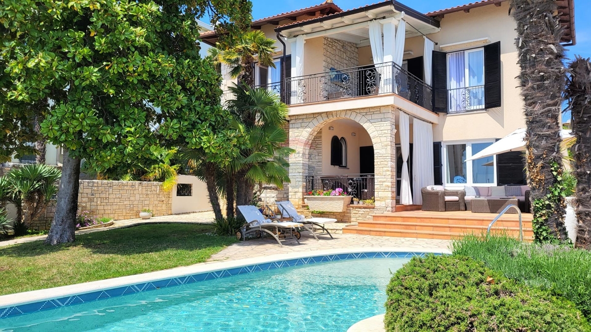 In der beliebtesten Lage in Umag liegt diese klassische Villa – am Standtrand und in der ersten Reihe zum Meer.Die Villa besteht aus einer großen Wohneinheit über zwei Etagen und zwei kleineren Gästewohnungen.