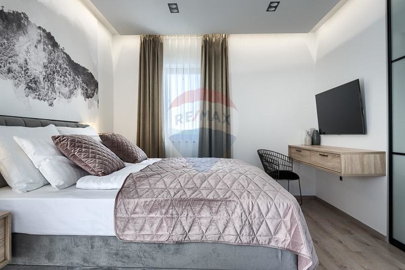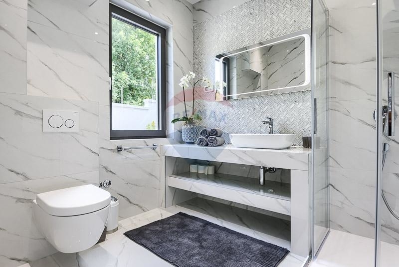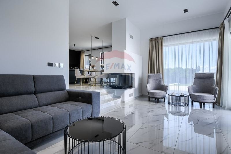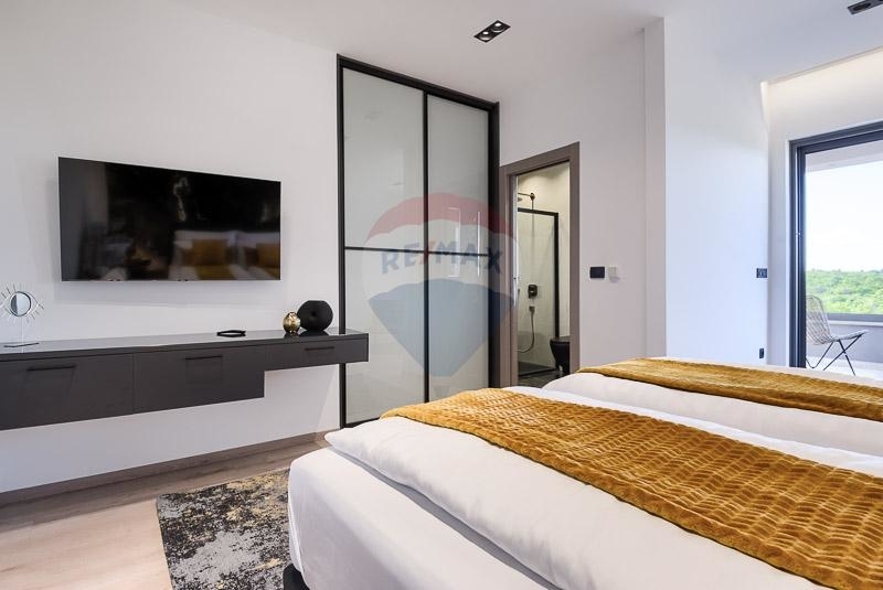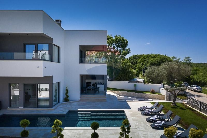 Dieser moderne Neubau befindet sich in einer idyllischen Lage an der Bucht von Krnica und bietet einen atemberaubenden Panoramablick aufs Meer.