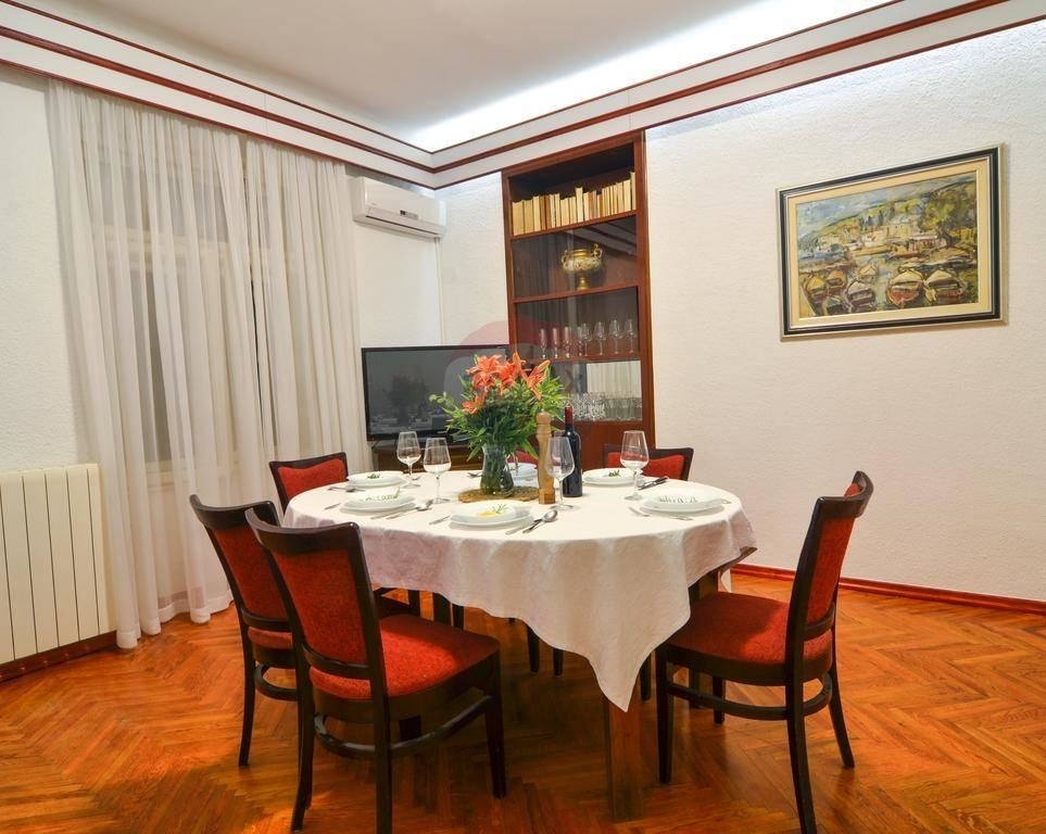 In einer historischen Villa im Zentrum von Opatija befindet sich diese schöne Maisonette-Wohnung.Der Eingang ist durch einen geräumigen Empfangsraum im Erdgeschoss, wo es eine Küche mit Essbereich gibt, Wohnzimmer, Bad, Abstellraum und Heizraum.
