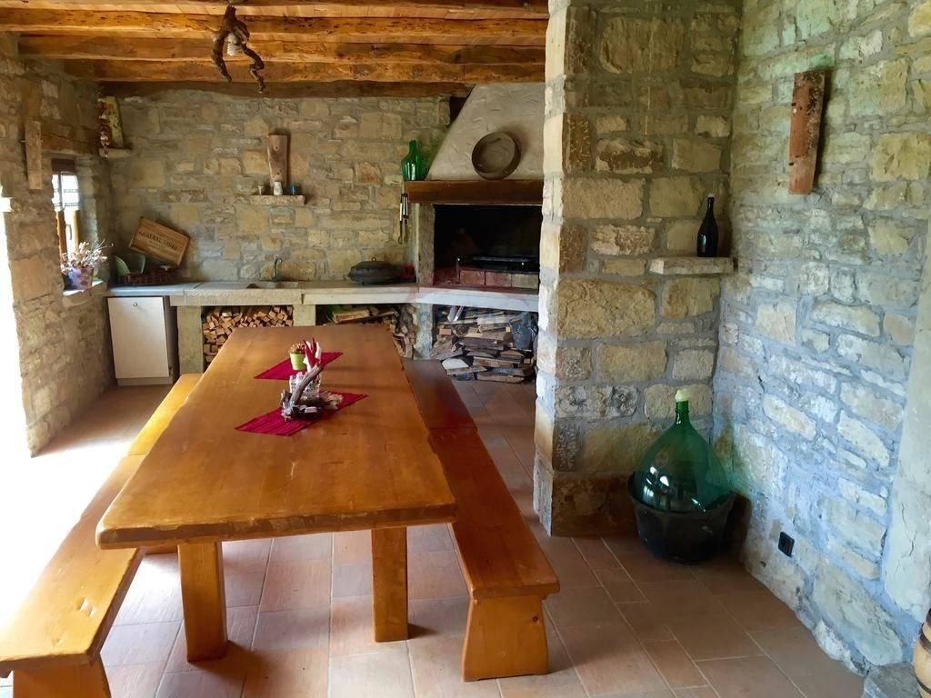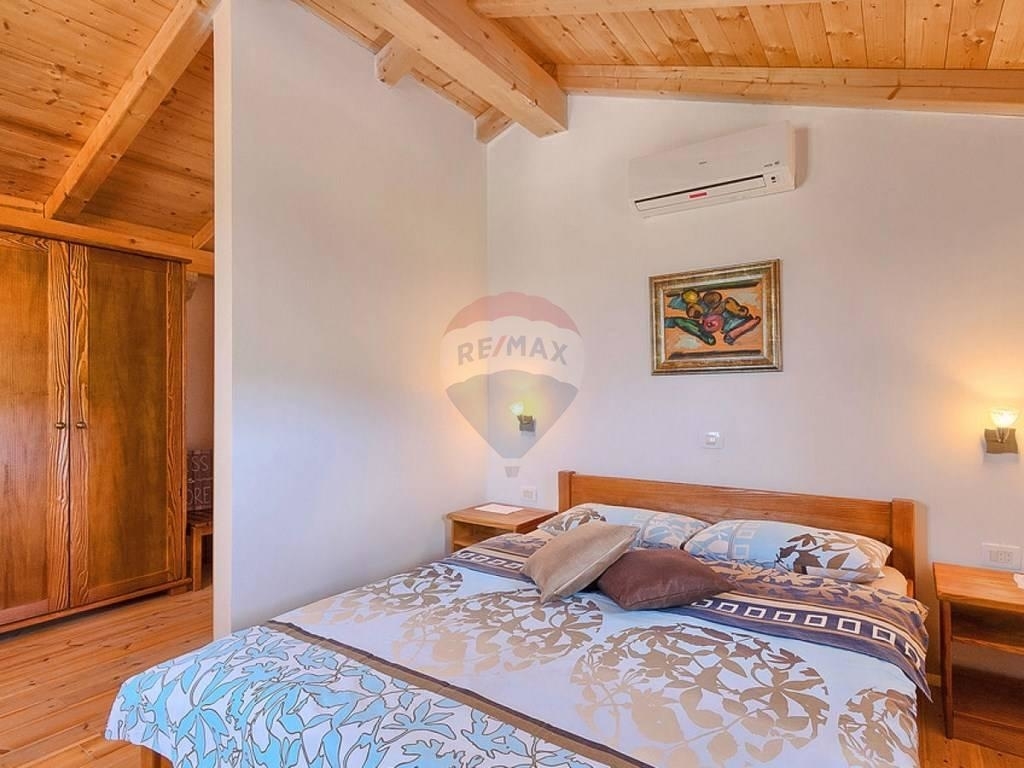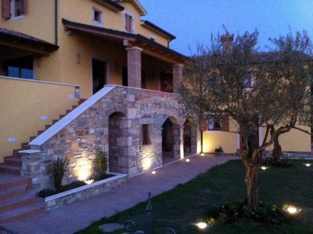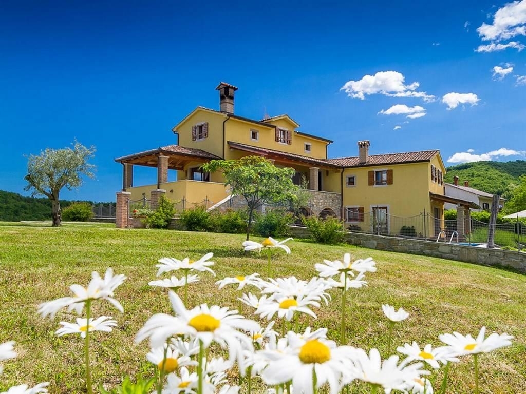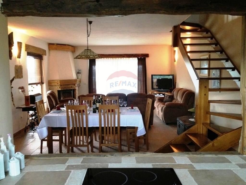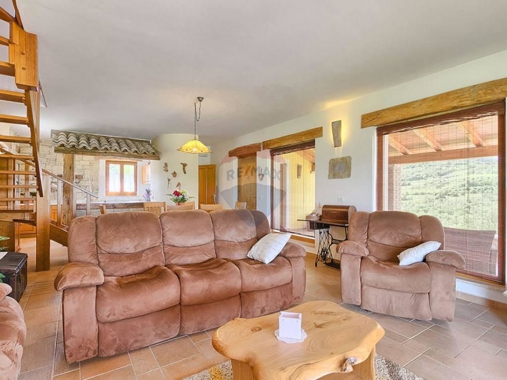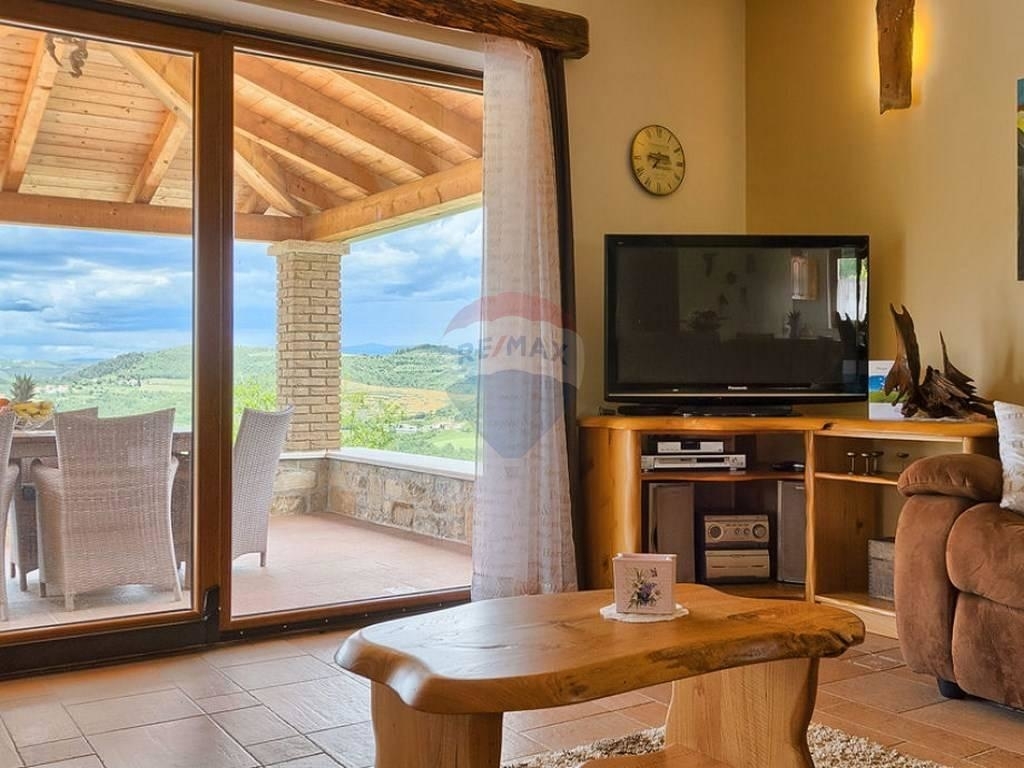 Diese Villa mit charakteristischen Merkmalen eines typischen istrischen Hauses liegt in einer idyllischen Lage im Herzen Istriens und bietet einen wunderschönen Blick auf die schöne Landschaft.Im Erdgeschoss dominiert ein großer, offener Wohn-Ess-Bereich mit Kamin und direktem Zugang zur überdachten Terrasse.