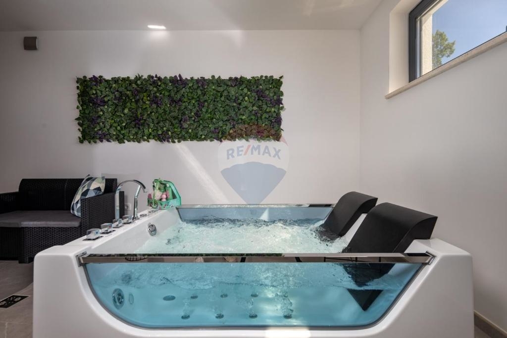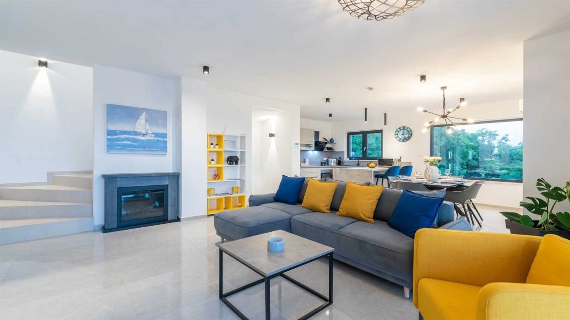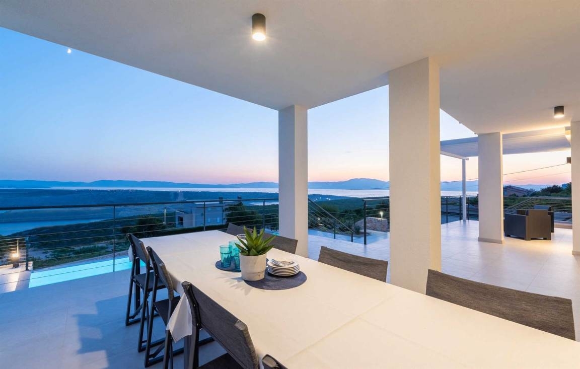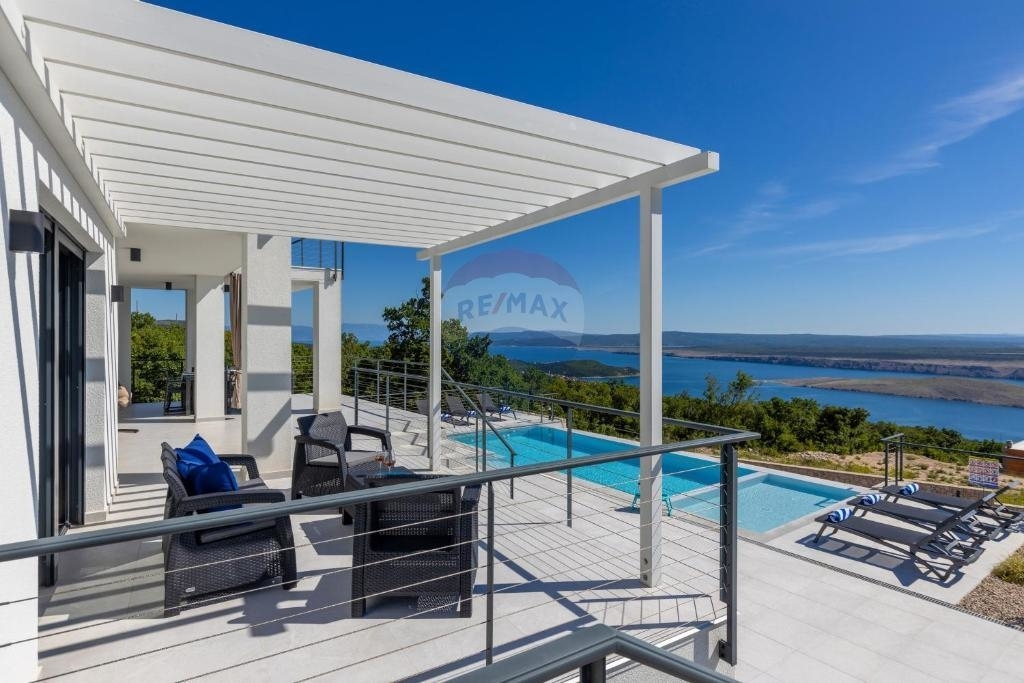 Dieses moderne Neubau befindet sich in Jadranovo. Die erhöhte Lage ermöglicht Ihnen einen offenen Panoramablick auf das Meer und die Insel Krk. Die Randlage garantiert Ihnen Ruhe und Privatsphäre und zugleich sind Sie schnell am Meer und mittendrin.Im Souterrain des Hauses befindet sich ein Gaming- und Fitnessraum sowie ein Wellnessbereich mit Sauna und Jaccuzzi mit WC, einem Abstellraum und dem Heizungskeller.
