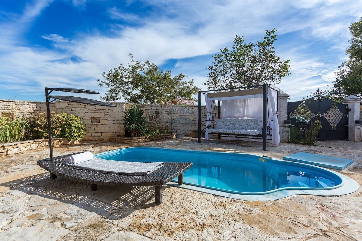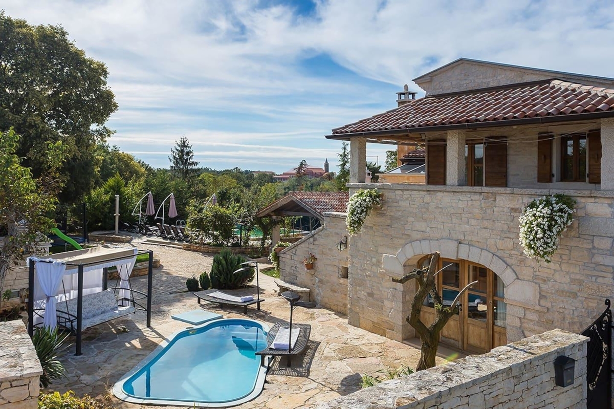 Dieses im Bauernstil erbaute Ferienhaus liegt in einer idyllischen Lage im Hinterland von Porec und bietet viel Ruhe und Erholung.Das Haus wurde im etnischen Stil mit natürlichen Rohstoffen wie Stein und Holz erbaut und eingerichtet, und bietet mit 5 Schlafzimmern, 4 Bädern genug Platz für die ganze Familie.