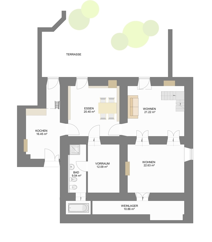 Zur Wohnung gehört ein großzügiger Gartenbereich mit Terrasse im historischen Innenhof.