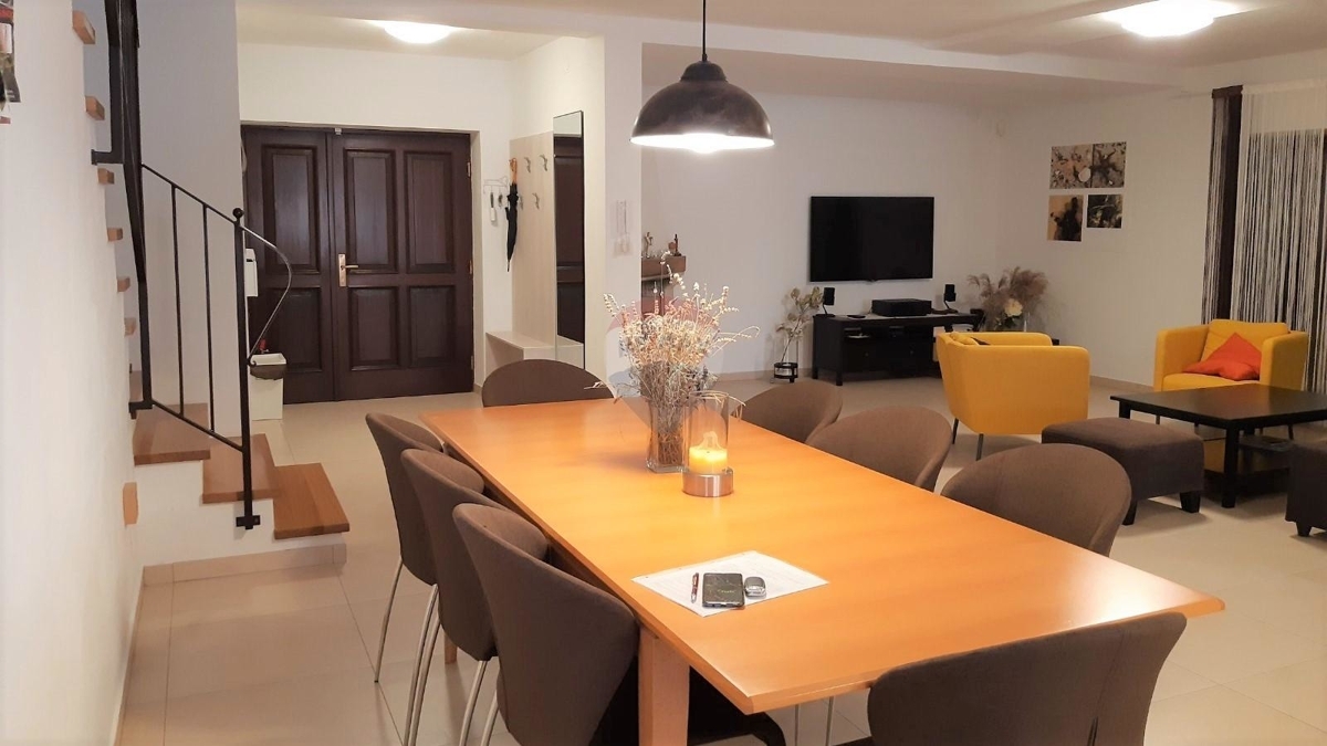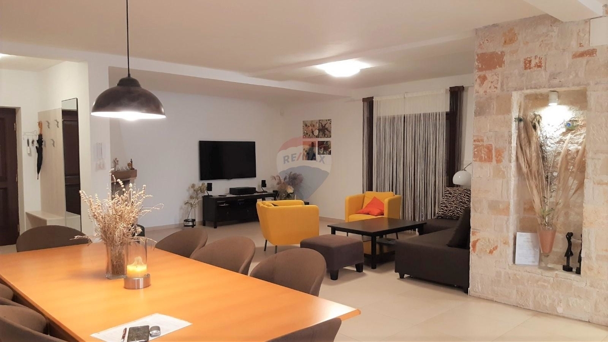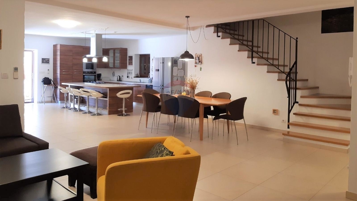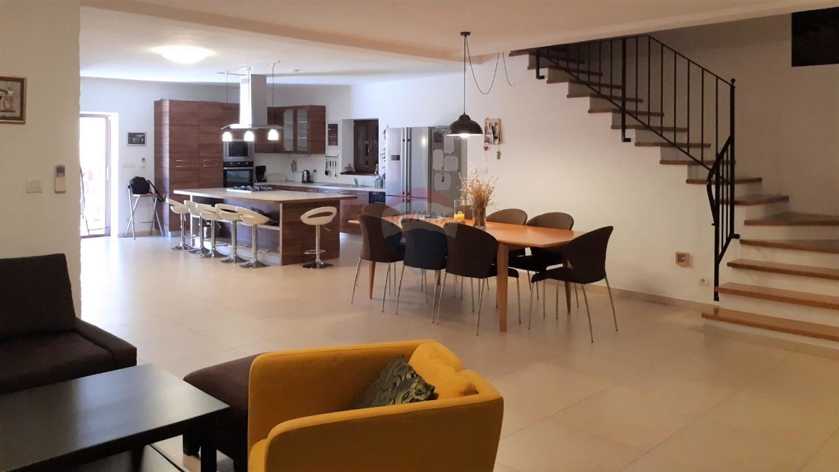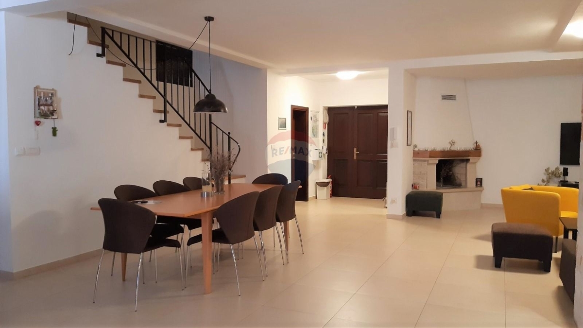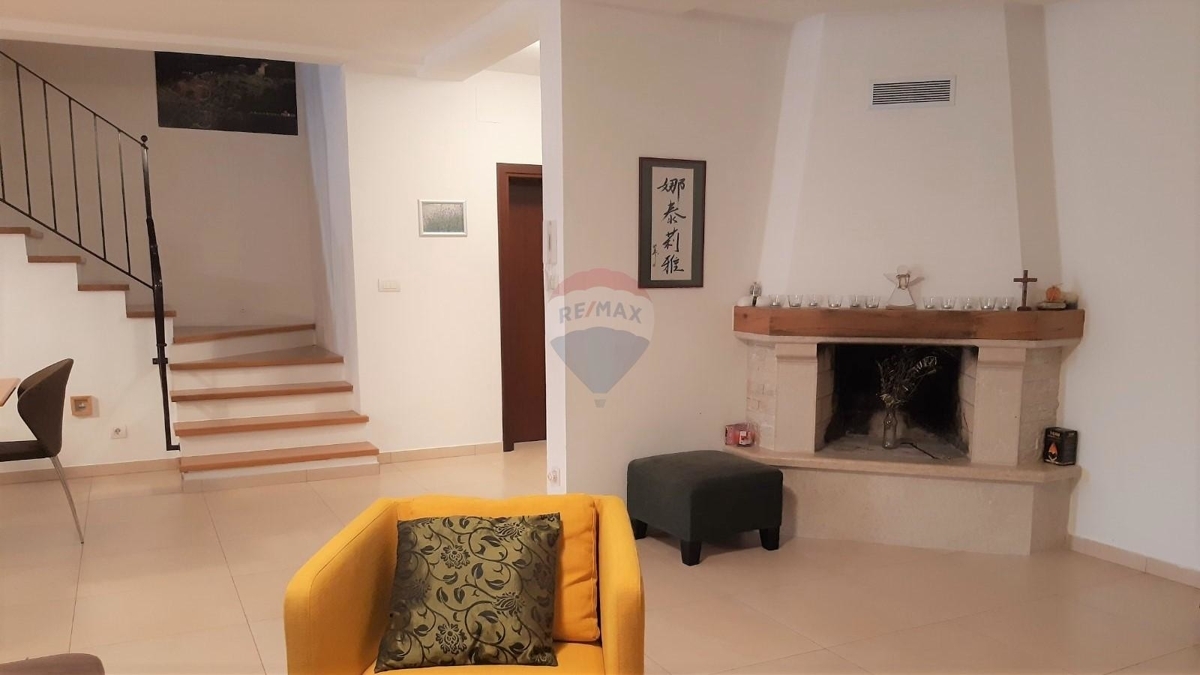 Im Erdgeschoss der Villa befindet sich das große offene open-space-Concept Wohn und Esszimmer. Das Highlight ist hier der schöne Kamin und die athentisch verarbeiteten Steinwände.