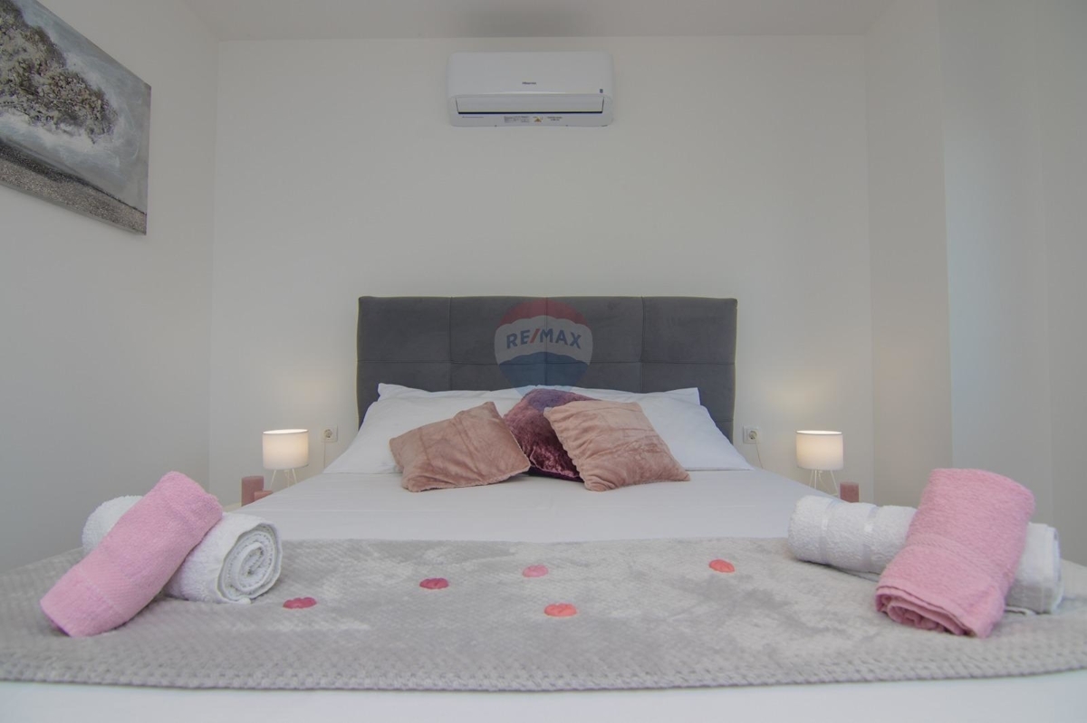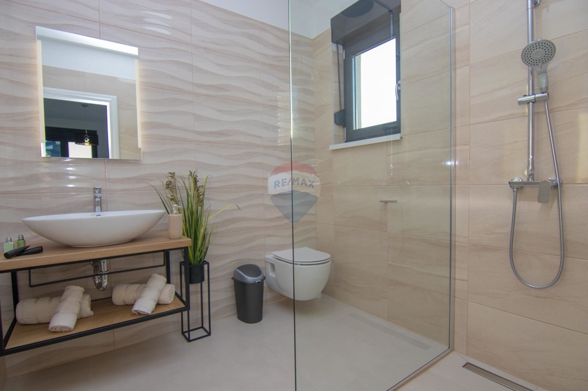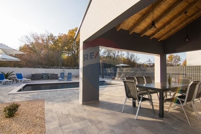 Dieses moderne Ferienhaus befindet sich in einer ruhigen Gegend, auf der Insel Krk und bietet Ihnen Ruhe und ein ländliches Flair.Das Erdgeschoss verfügt über ein großes Wohnzimmer mit Zugang zur Terrasse, einer Ess-Küche, ein Schlafzimmer und ein Badezimmer.