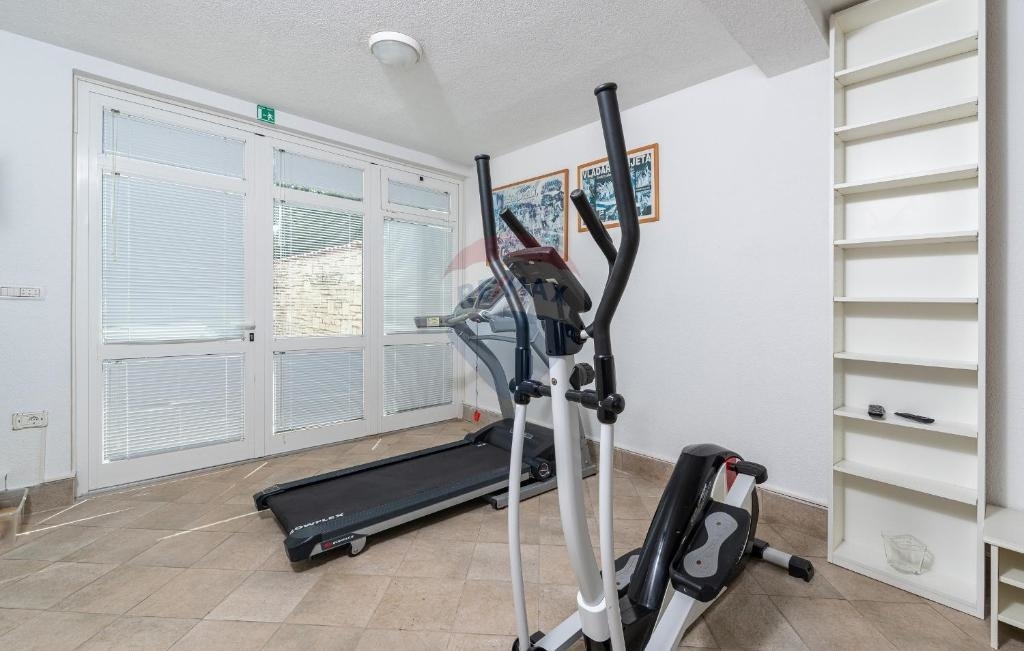 Ein großes Freizeitraum mit Tischtennisplatte und Fitnessgeräten sind im Haus enthalten. Der Außenbereich bietet einen 45m2 großen, beheizten Salzwasser-Pool, einen Grillplatz mit Sitzmöglichkeiten und einen weiteren Steintisch im Garten.