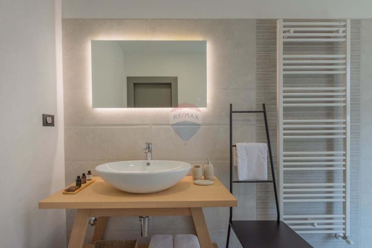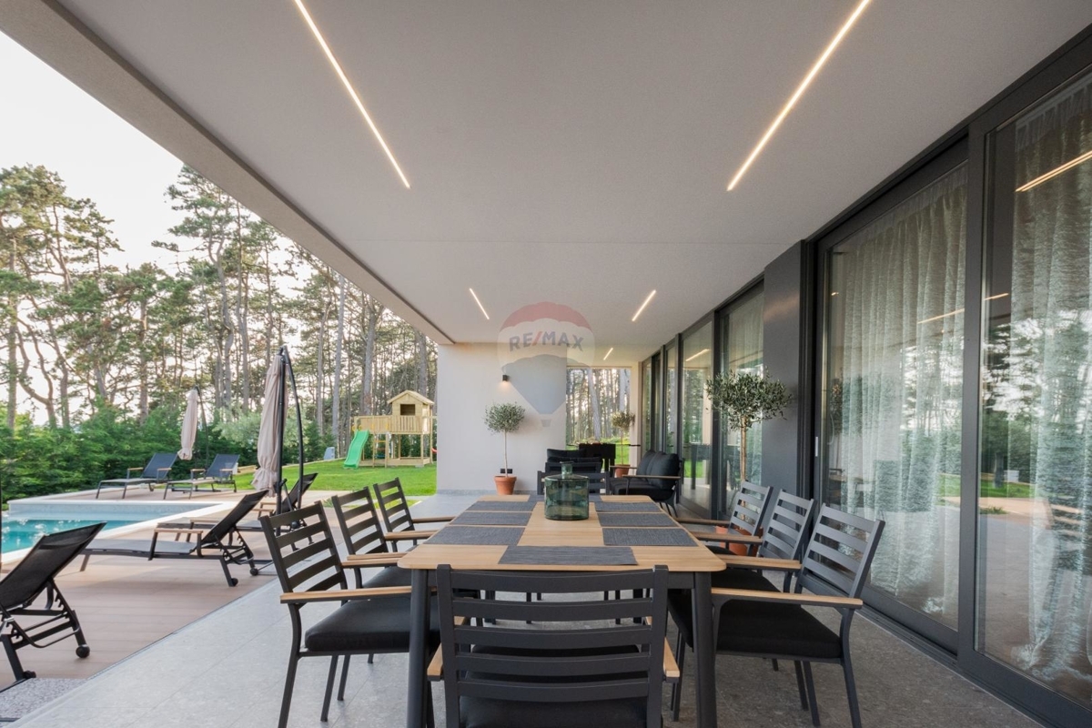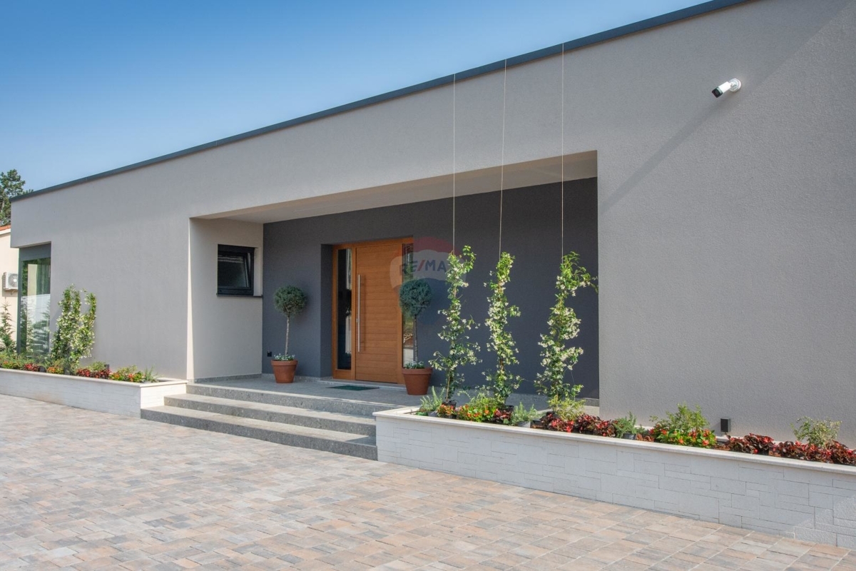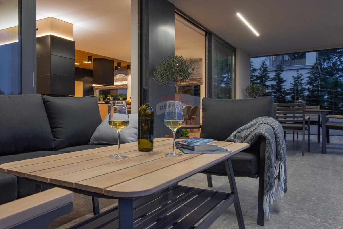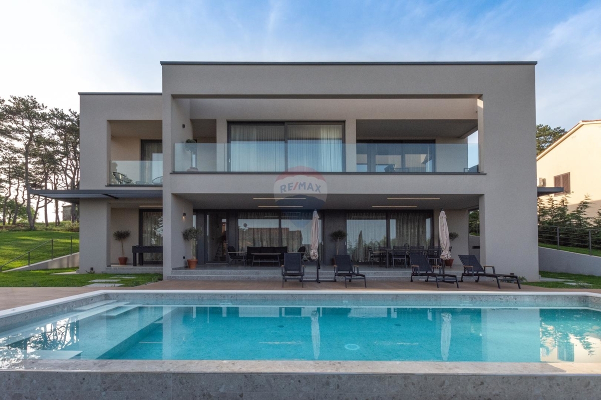 Diese moderne Villa befindet sich an der Ostküste Istriens, nah bei Rabac und Labin und bietet Ihnen absolute Privatsphäre in einer ruhigen Umgebung.Da sich das Haus in Hanglage befindet ist der Haupteingang auf der Nordseite des Hauses im Obergeschoss. Dieses verfügt über einen Loungebereich und vier Schlafzimmern jedes davon mit eigenem Badezimmer und eigenem Balkon mit Meerblick.