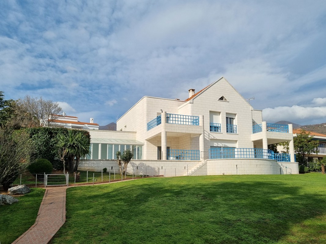 Direkt oberhalb der Marina, auf etwa 2.000 m² großem Grundstück thront diese majestätische Villa. Das Exterieur besticht mit der außergewöhnlichen und dennoch stimmigen, zeitlosen Architektur.Obergeschoss: