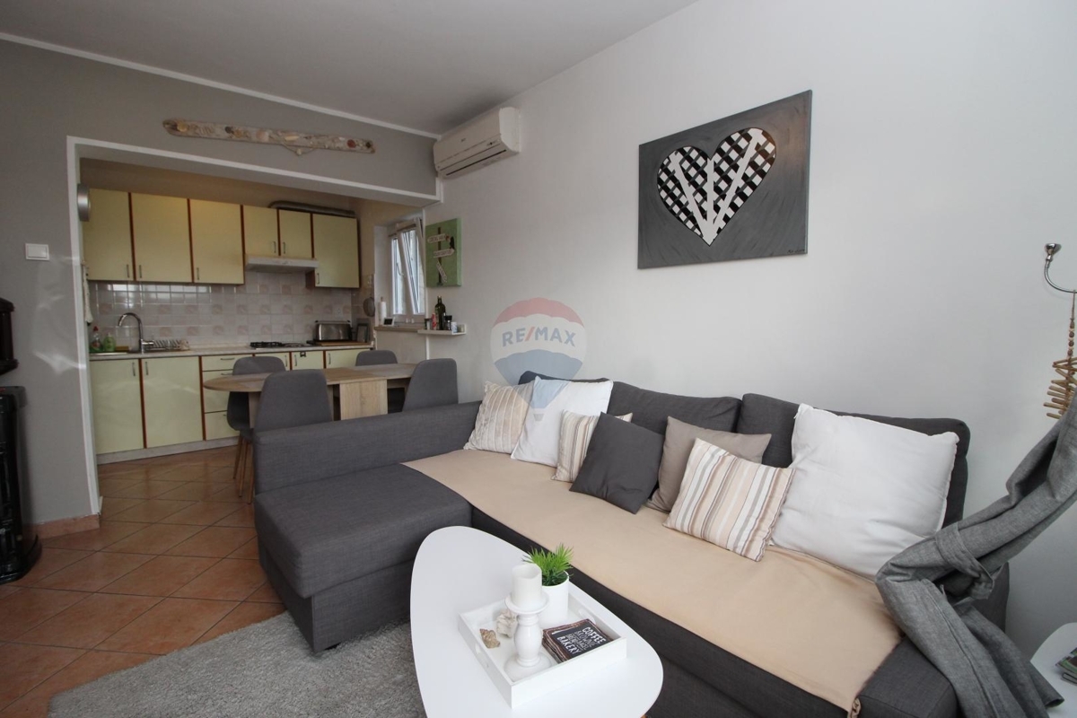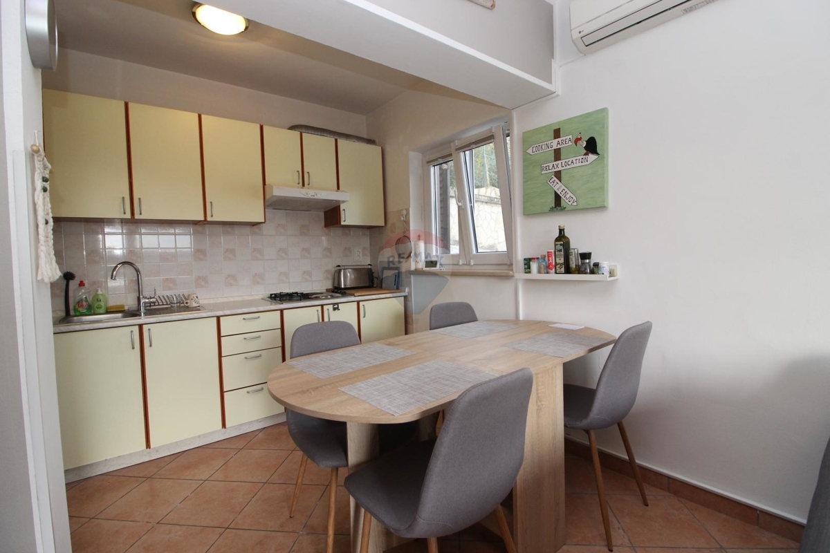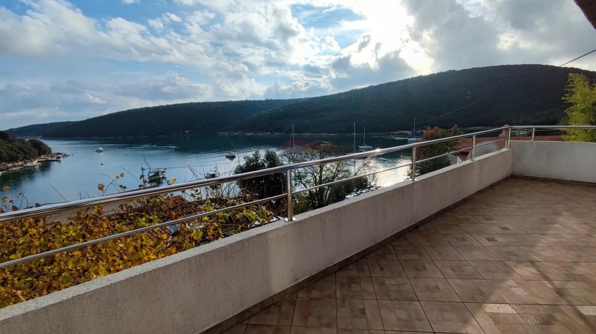 In einem malerischen Fischerort befindet sich diese gemütliche 3-Zimmer-Wohnung an der Ostküste Istriens. Lediglich 50 m vom Meer entfernt bietet sie Ihnen einen tollen Ausblick auf das Meer.Die Wohnung befindet sich im 1. Obergeschoss eines kleineren Hauses. Es verfügt über einen Eingangsbereich, einem offenen Wohn-Essbereich mit Küche, zwei Schlafzimmern und ein Badezimmer. Alle Zimmer führen auf die große Terrasse mit Meerblick.