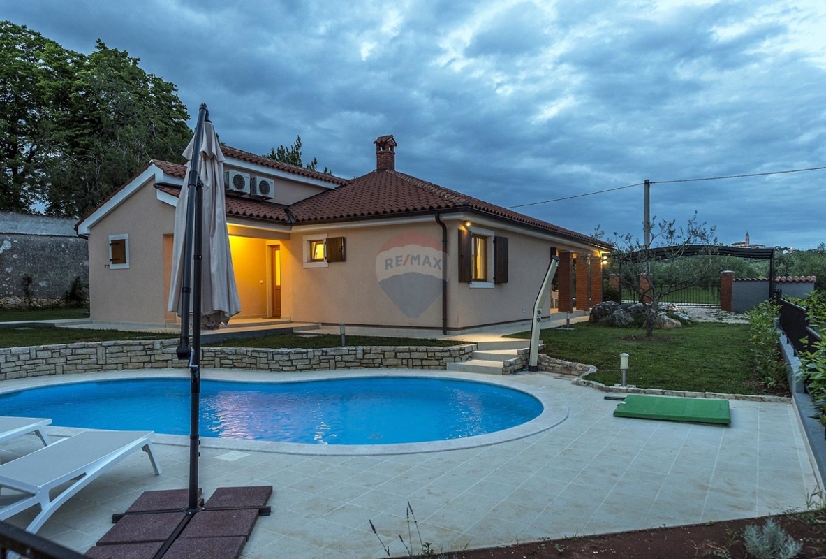 Dieses charmante Ferienhaus befindet sich in einer malerischen Vorort von Porec und bietet Ihnen neben Ruhe und Privatsphäre, einen tollen Ausblick auf das Meer.Das Haus verfügt über drei Schlafzimmer, zwei davon mit eigenem Badezimmer, eine Küche mit Essbereich sowie ein Wohnzimmer mit direktem Zugang zur Terrasse.