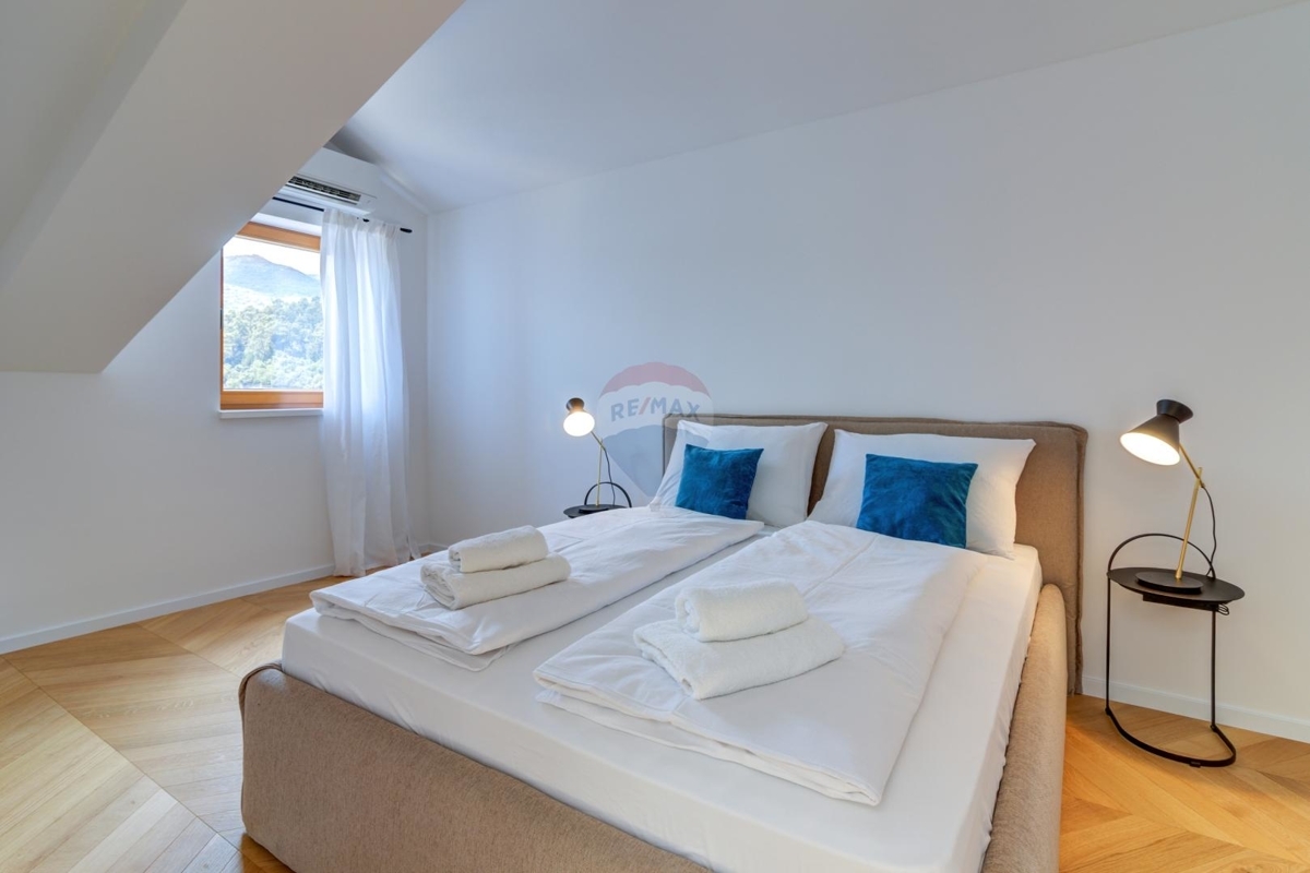 Im Dachgeschoss befinden sich zwei weitere Schlafzimmer sowie ein weiteres Bad. Die Wohnung bietet einen wunderschönen Ausblick auf das Meer, die Inseln und die Küste der Opatijas Riviera.