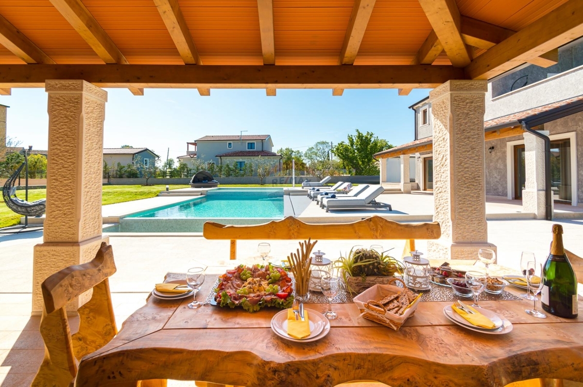 Die Villa ist klimatisiert und wird über eine Pellet-Zentralheizung sowie über Solarpanele beheizt. Der gesamte Garten ist mit einem Solar-Bewässerungssystem ausgestattet. Ebenso verfügt die Villa über ein Alarmsystem mit Videoüberwachung. Für den Bau wurden nur hochwertige Materialien gewählt. Die Energieeffizienzklasse ist mit A+ bewertet.Sonstige Angaben: