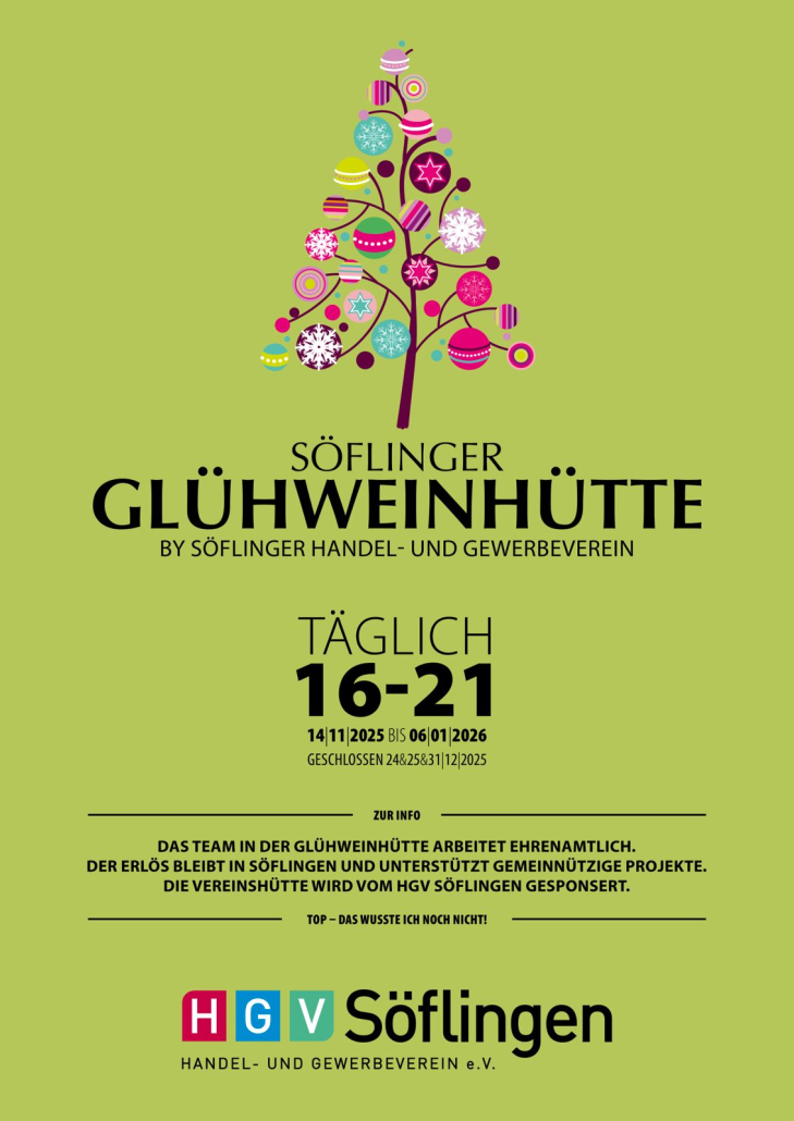 Der Söflinger Weihnachtsmarkt mit seiner beliebten Glühweinhütte wartet mit heißem Glühwein, Punsch und kleinen Leckereien auf alle Genießer und Besucher die Weihnachtsstimmung lieben.